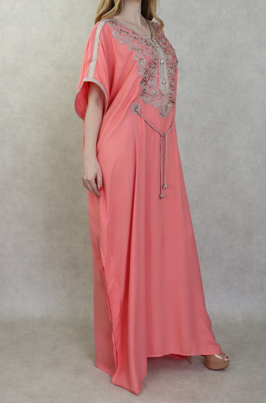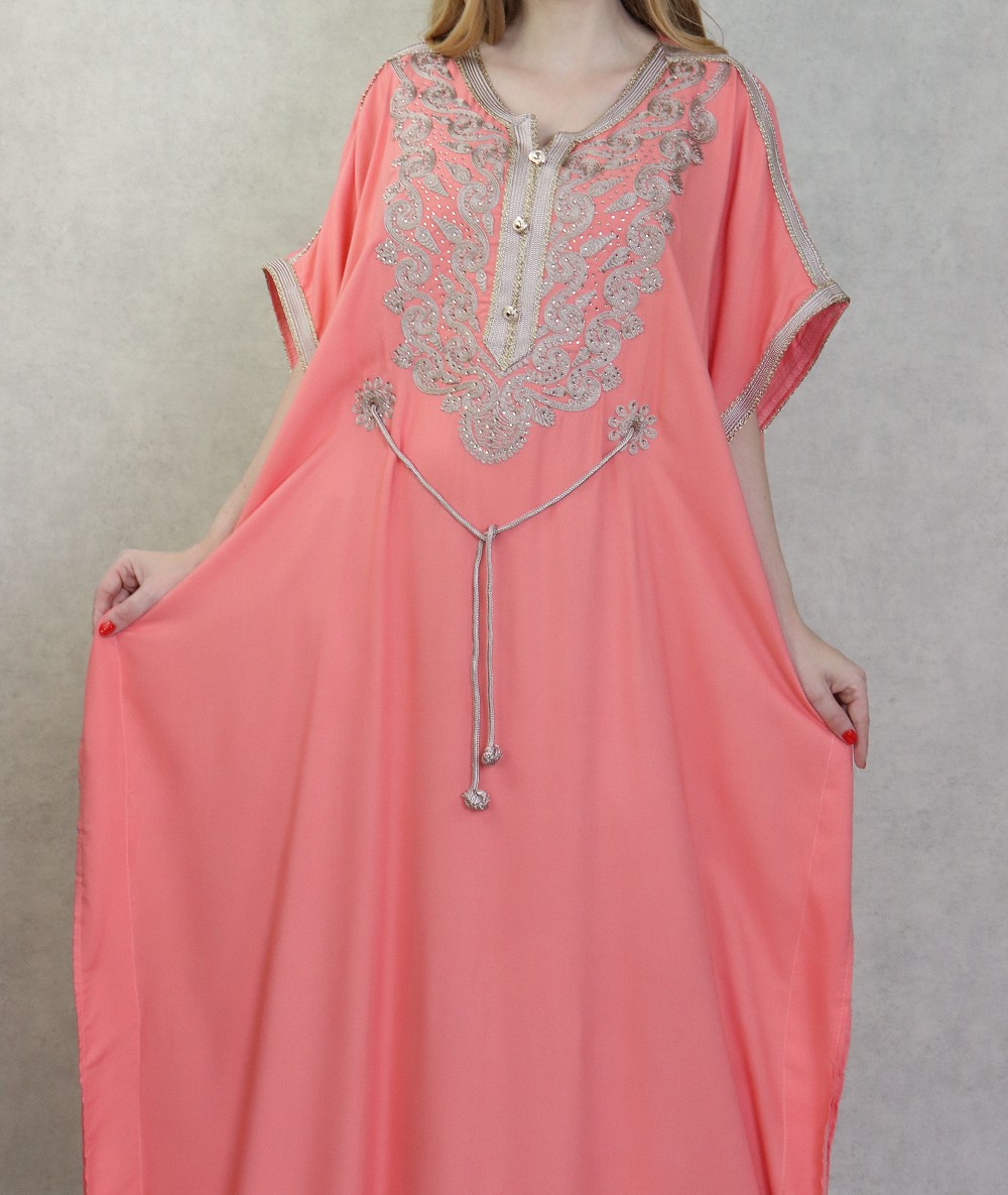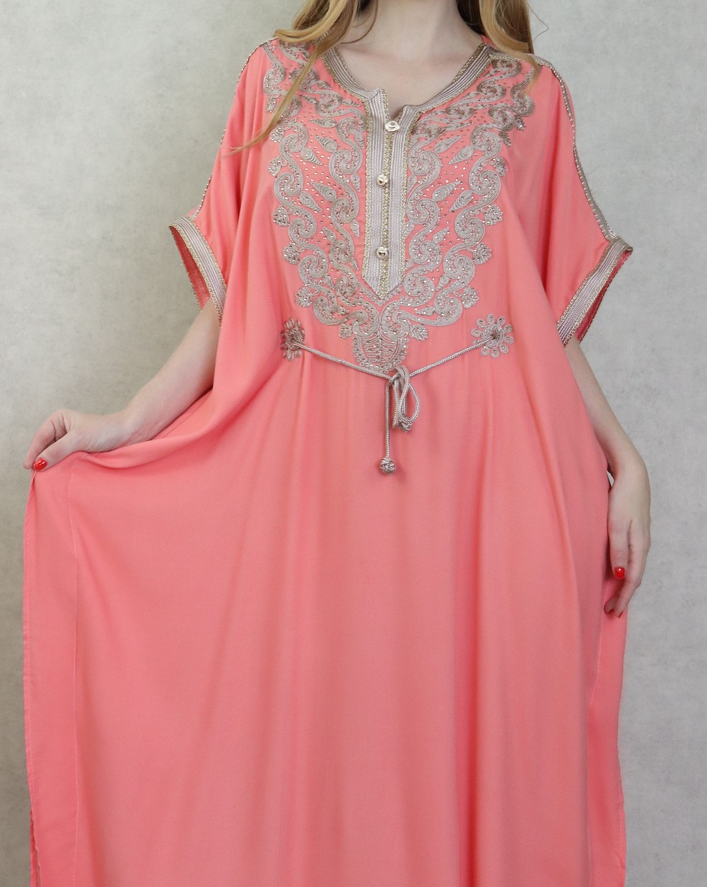 Robe orientale brodée manches courtes pour femme - Couleur saumon Vetement & Accessoire
