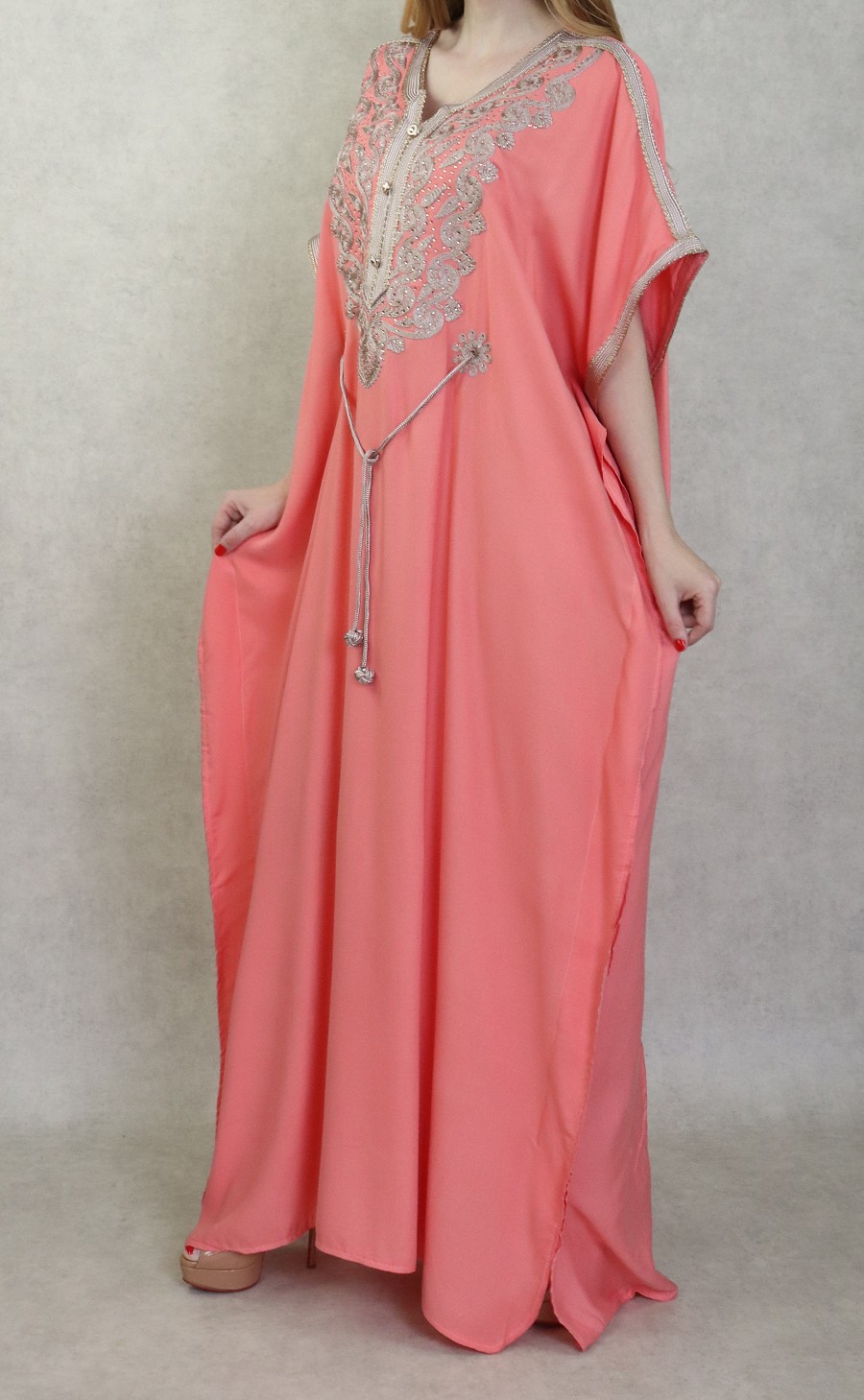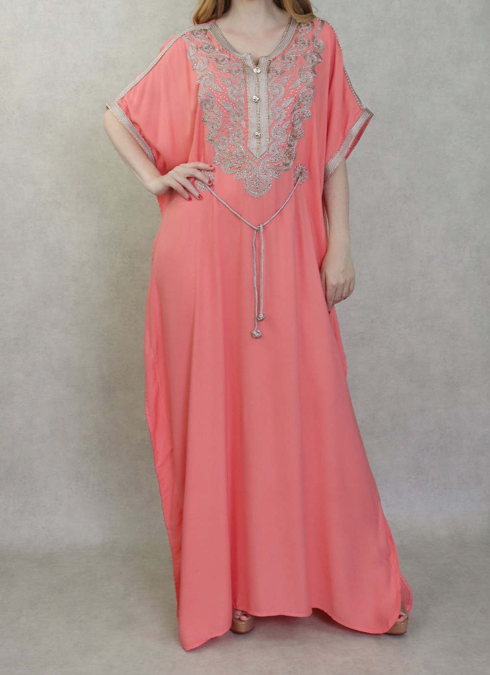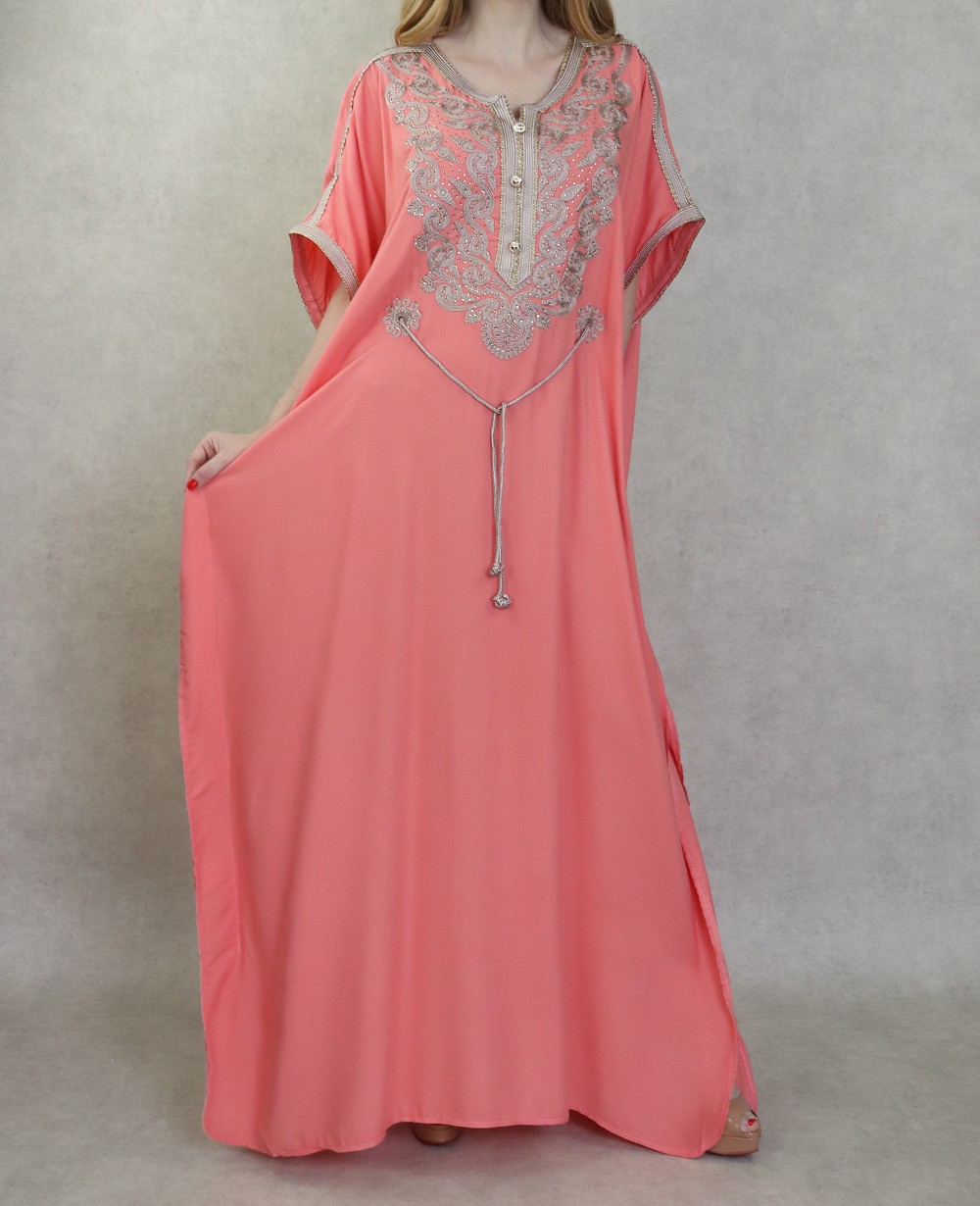 Robe orientale brodée manches courtes pour femme - Couleur saumon Vetement & Accessoire