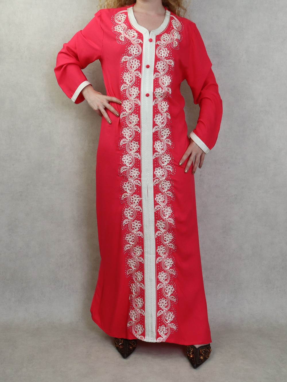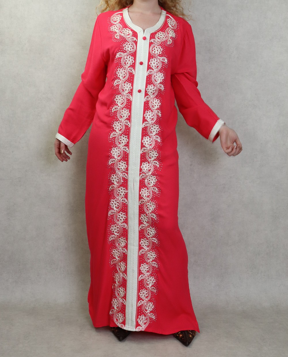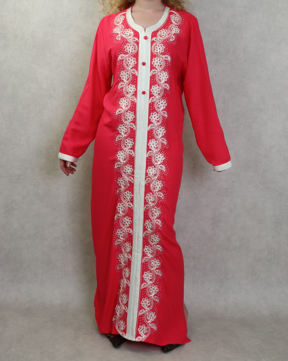 Robe orientale brodée manches longues pour femme - Couleur Corail Vetement & Accessoire
