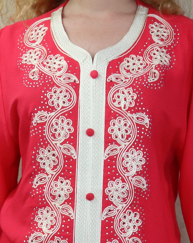 Robe orientale brodee manches longues pour femme - Couleur Corail