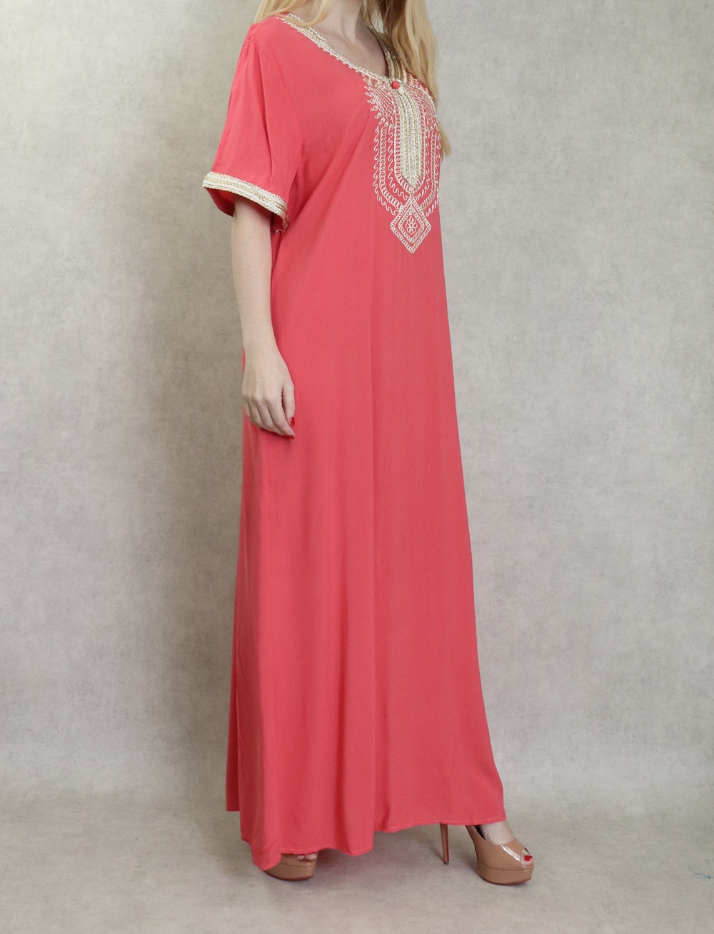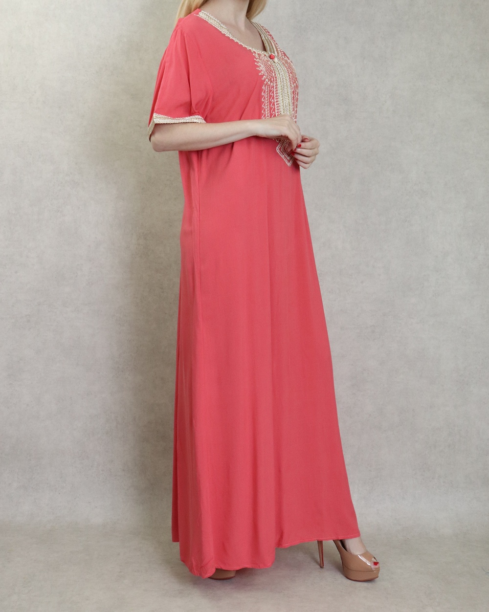 Robe orientale confortable et décontractée avec broderies pour femme - Couleur Corail Vetement & Accessoire