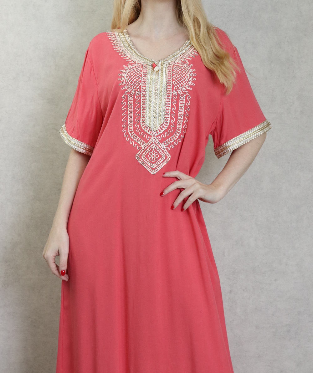Robe orientale confortable et decontractee avec broderies pour femme - Couleur Corail