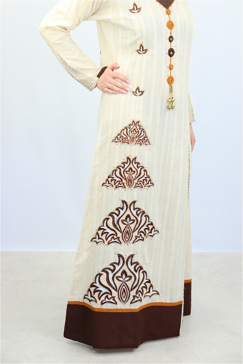 Robe de soirée en lin brodée - Robe orientale maxi-longue pour femme - REF. 28086 (110.00 €)