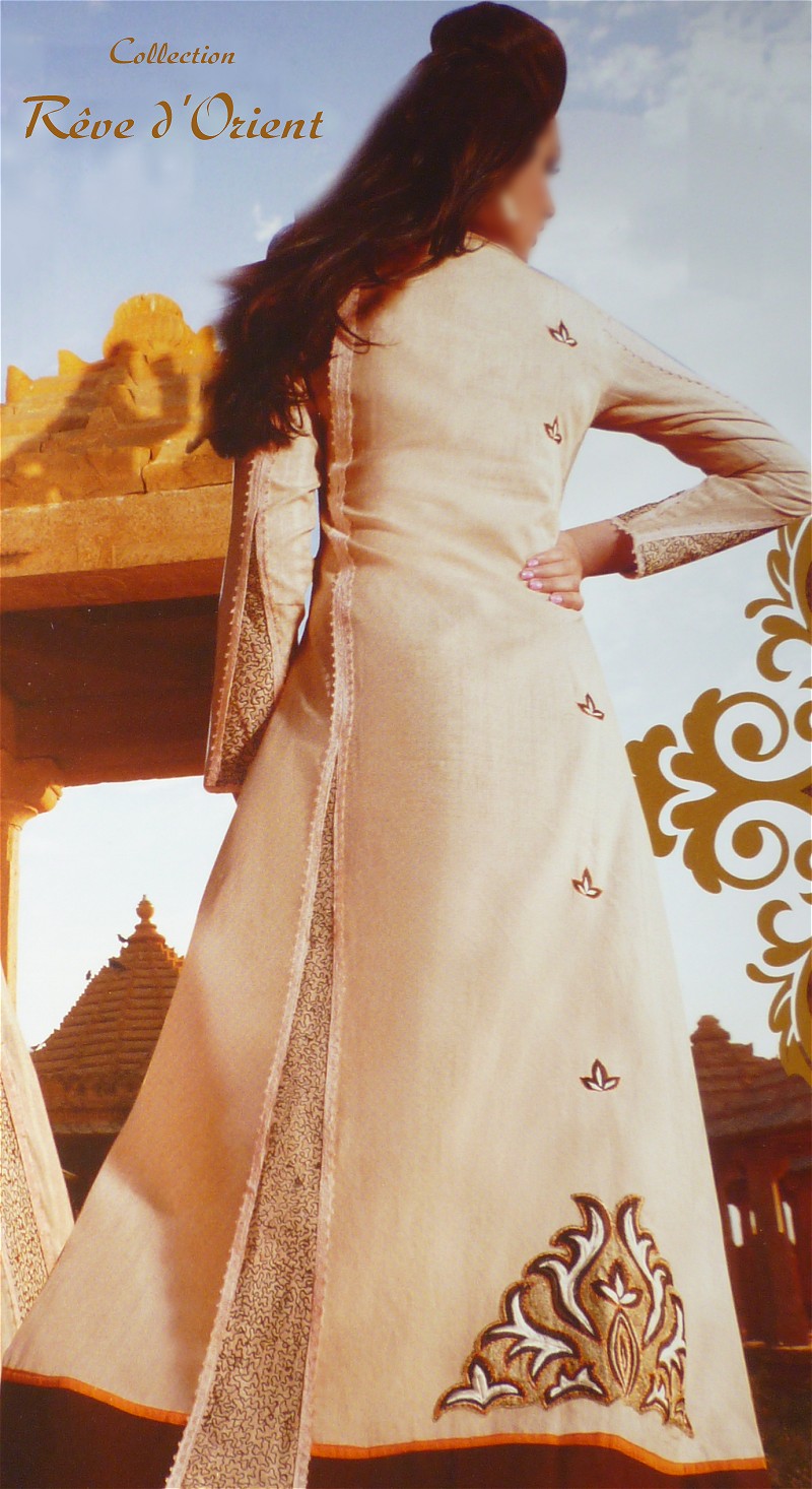 Les robes orientales de la collection Rêve d'Orient sont confectionnées avec le plus grand soin par des couturiers spécialisés des ateliers Sara en Inde. 100% tissus de qualité.