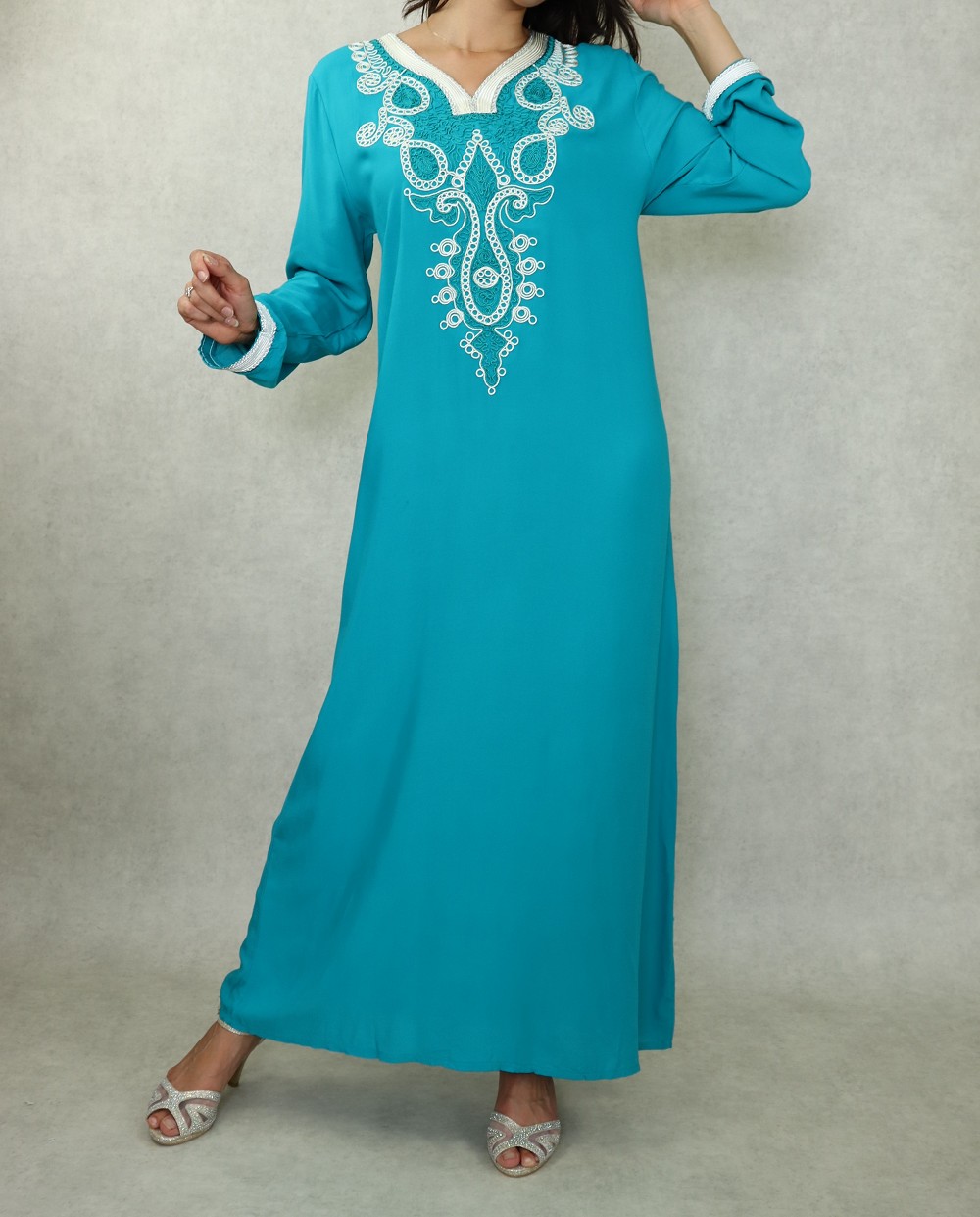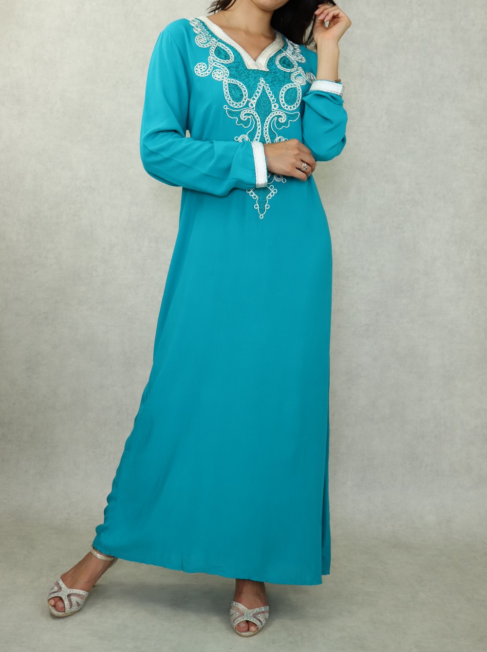 Robe orientale longue avec broderies et strass couleur vert-bleu - REF. 33030 (28.00 €)