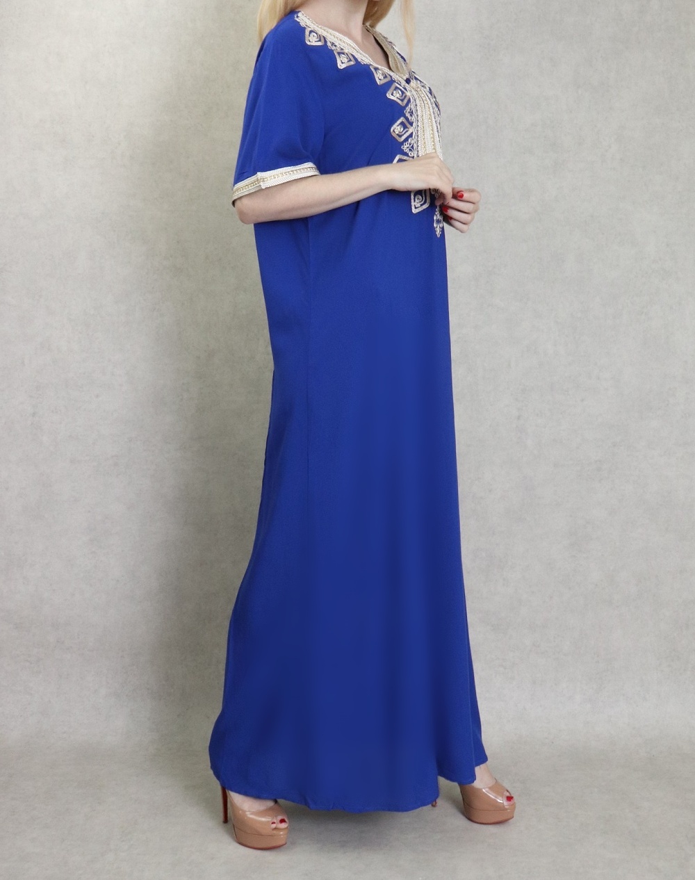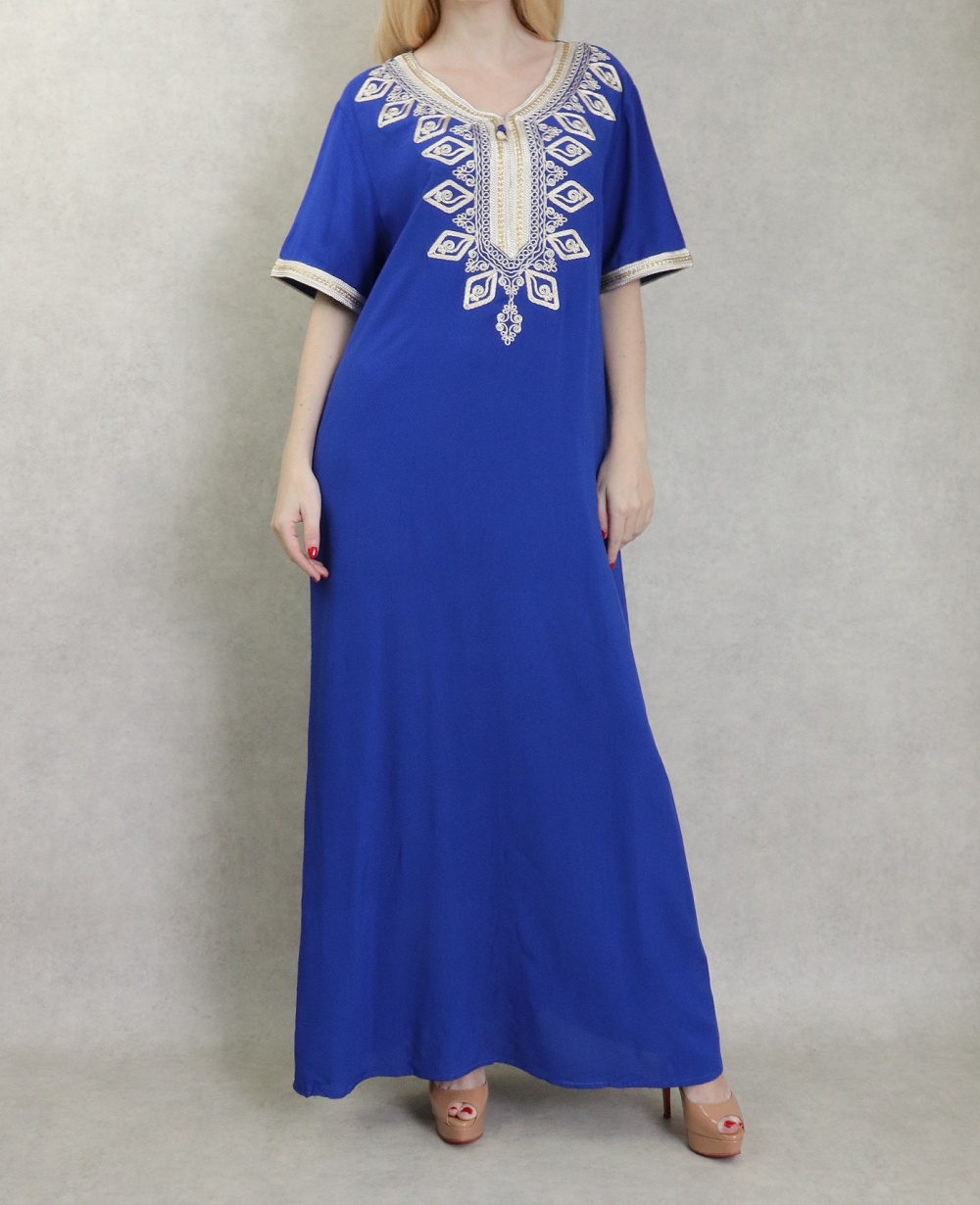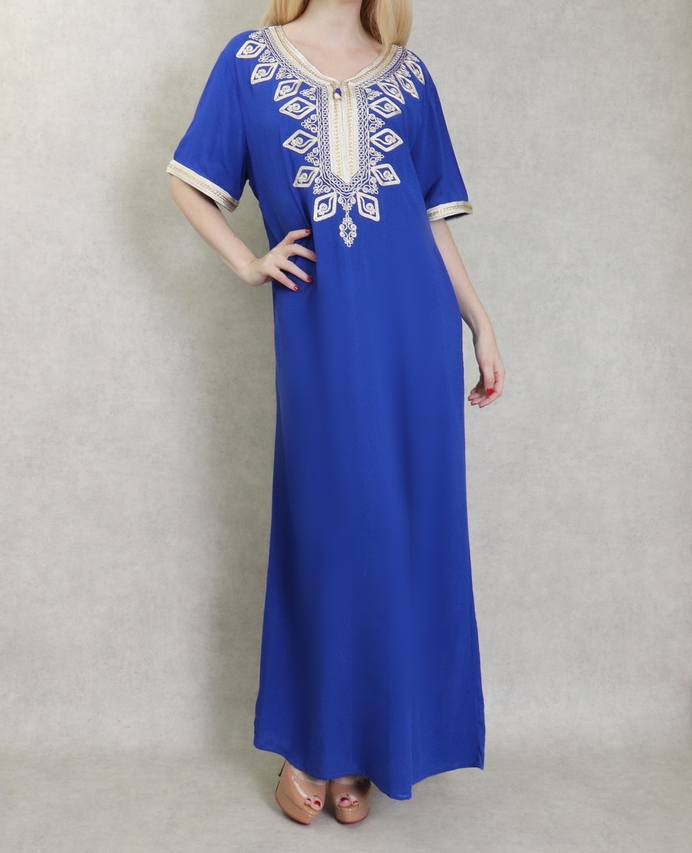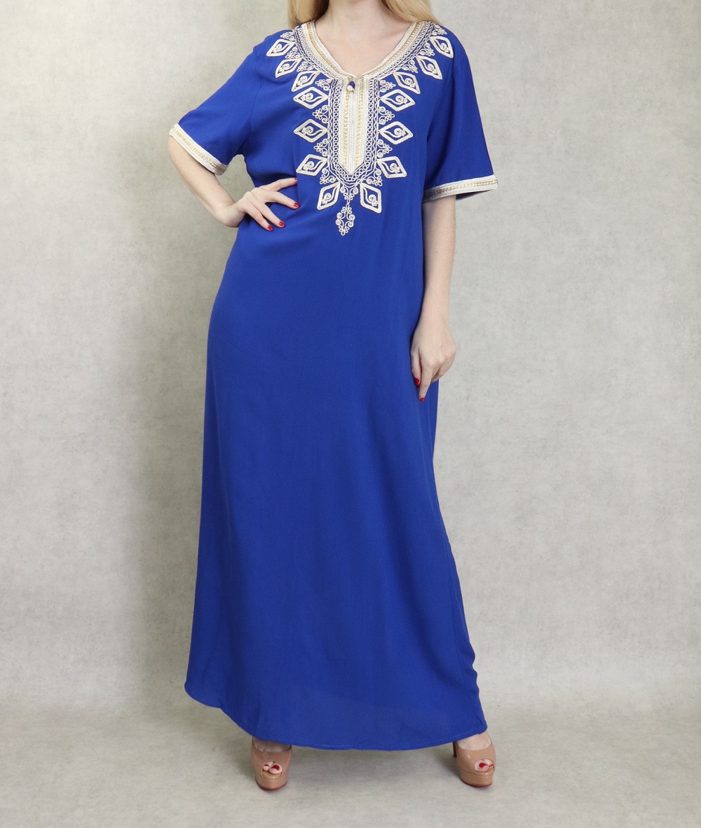 Robe orientale longue avec borderies pour femme (Robes pas cher pour femmes) - Couleur bleu roi Vetement & Accessoire