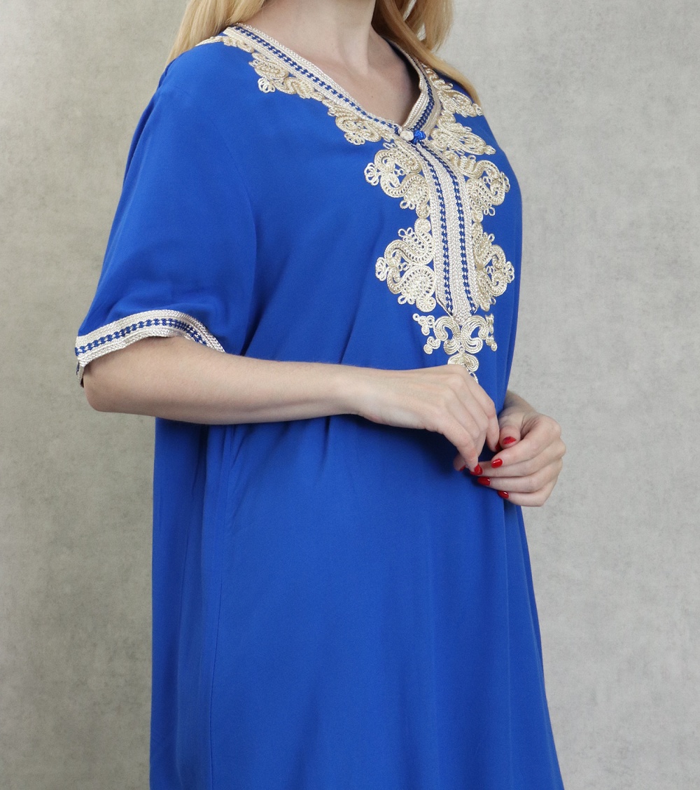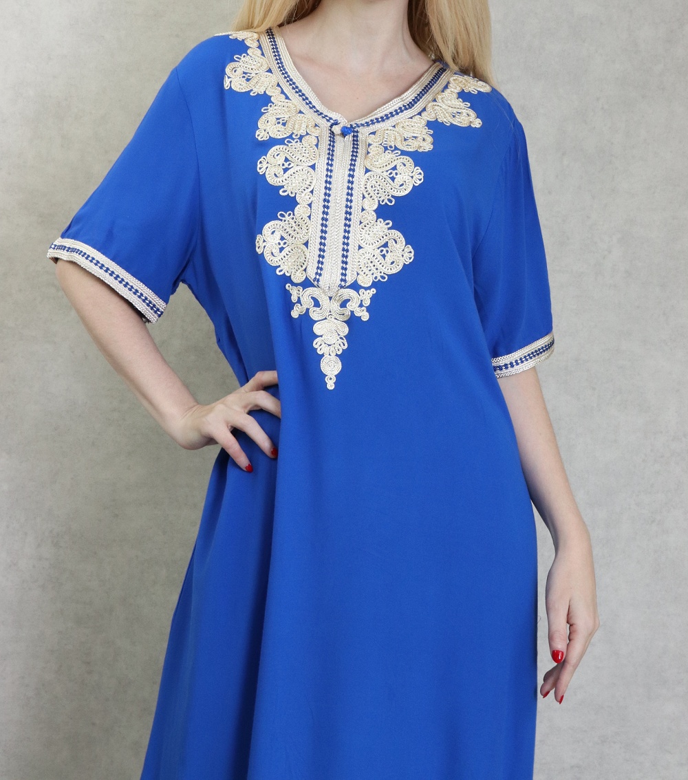 Robe orientale longue brodée manches courtes et décontractée pour femme - Couleur bleu roi Vetement & Accessoire