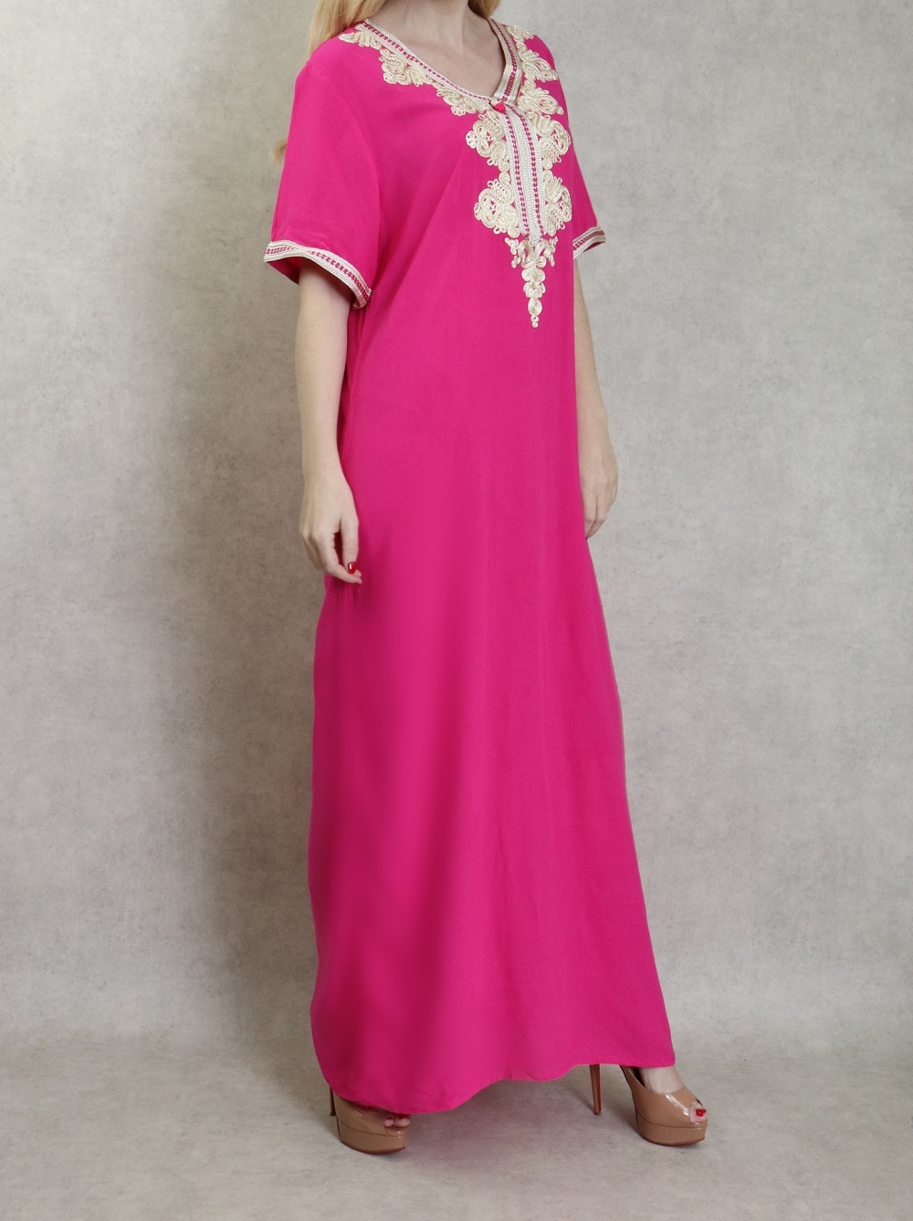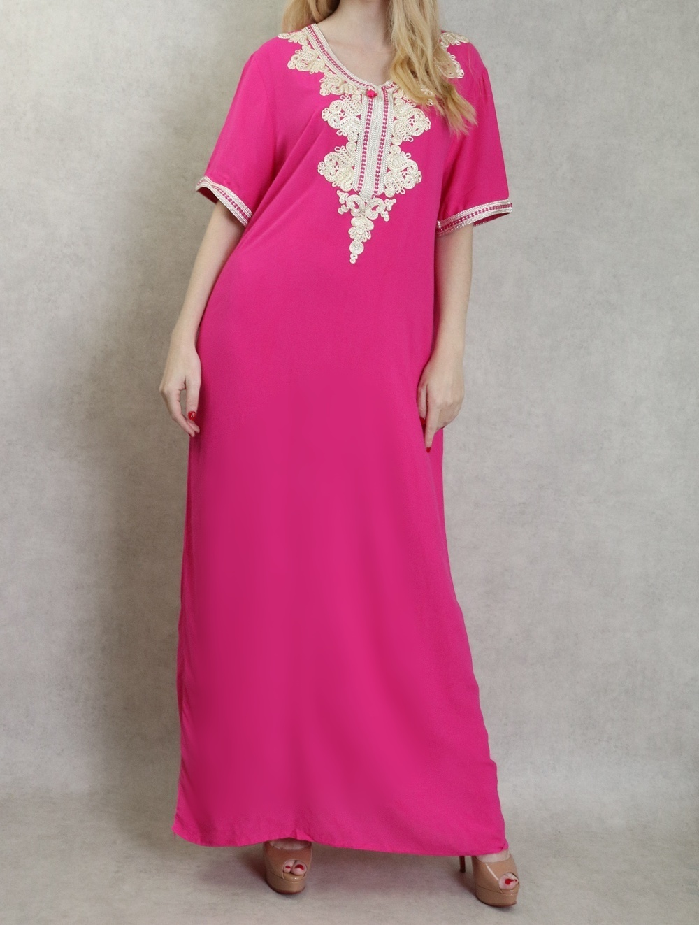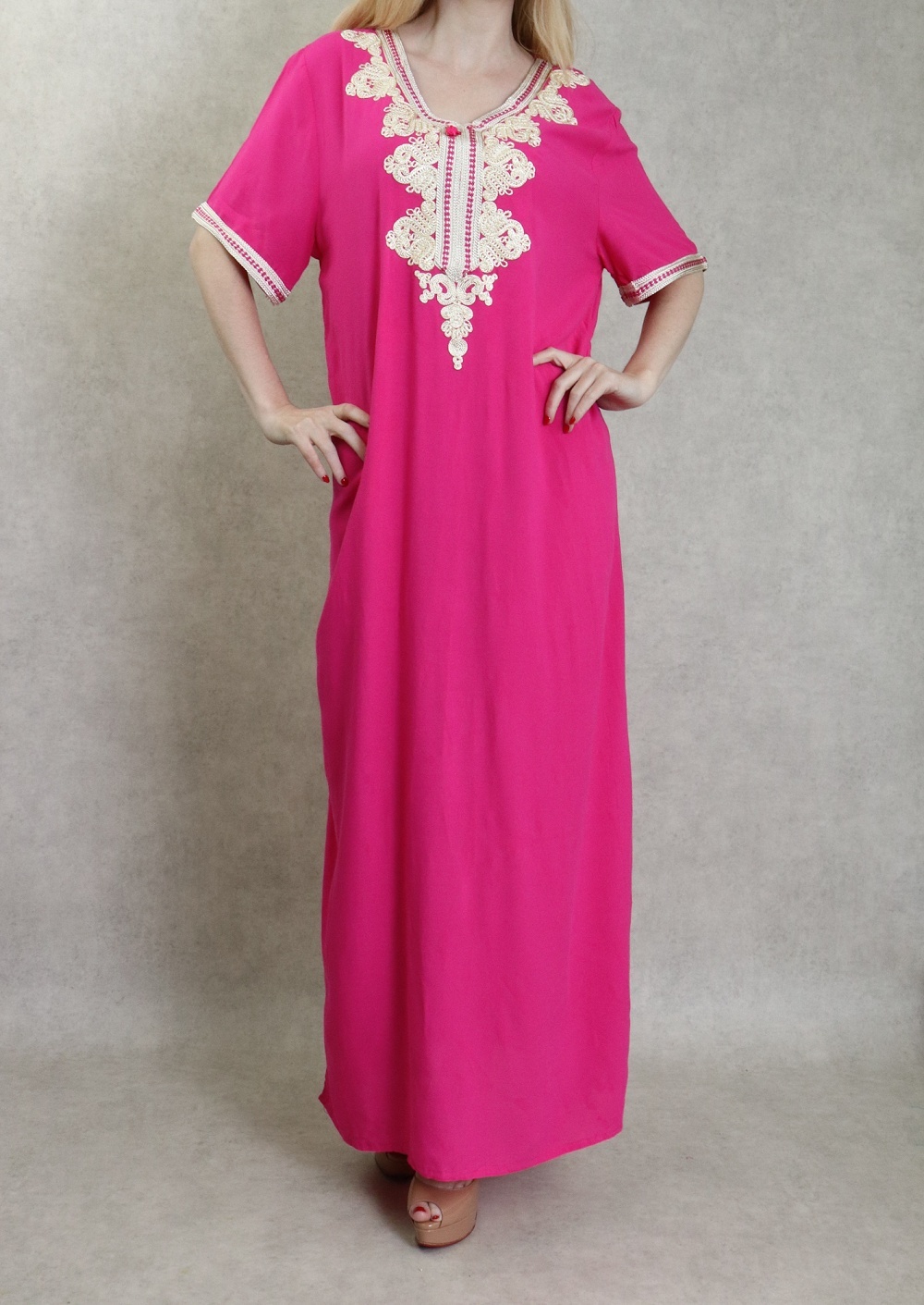 Robe orientale longue brodee manches courtes et decontractee pour femme - Couleur fuchsia