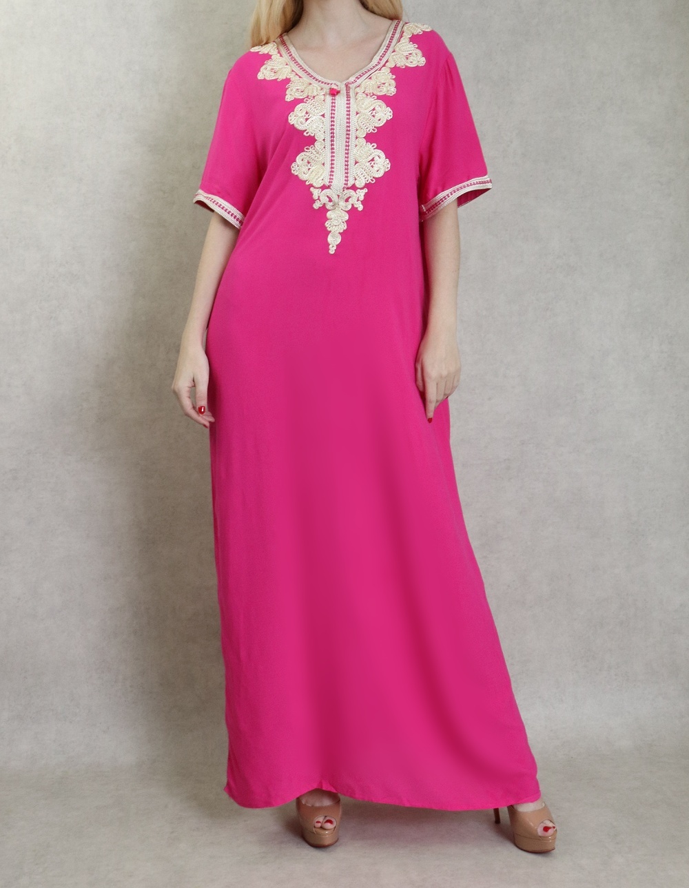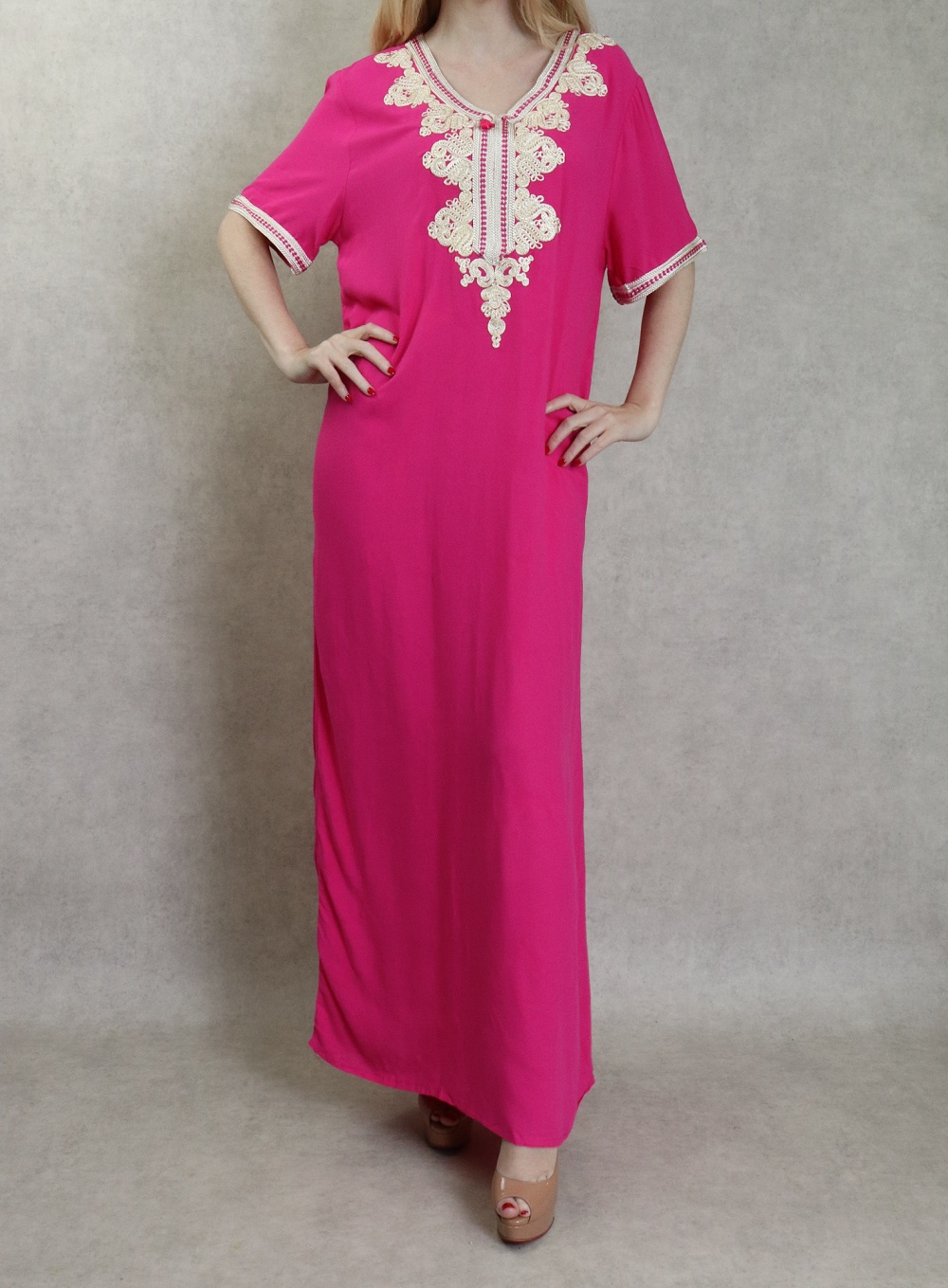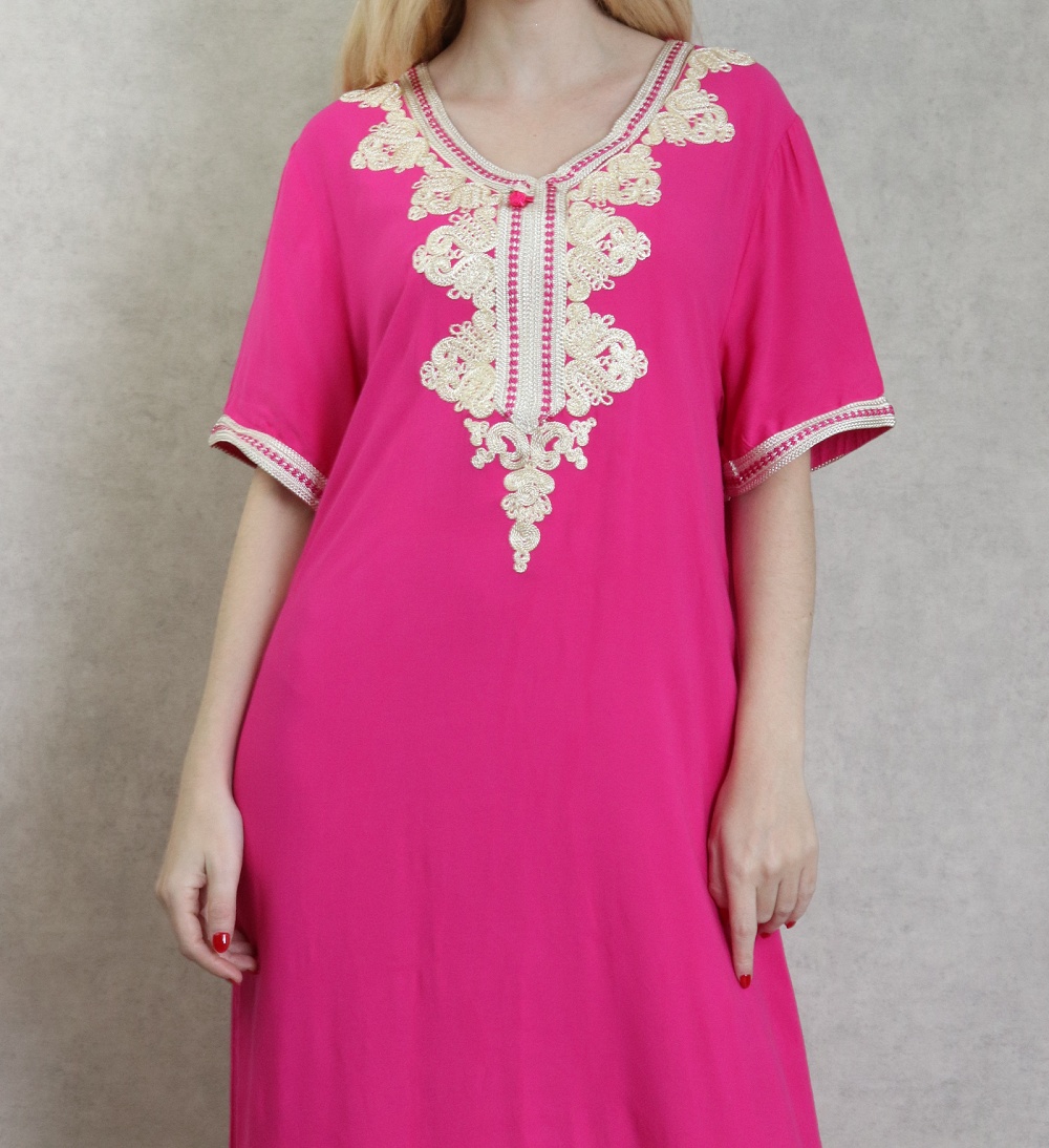 Robe orientale longue brodee manches courtes et decontractee pour femme - Couleur fuchsia