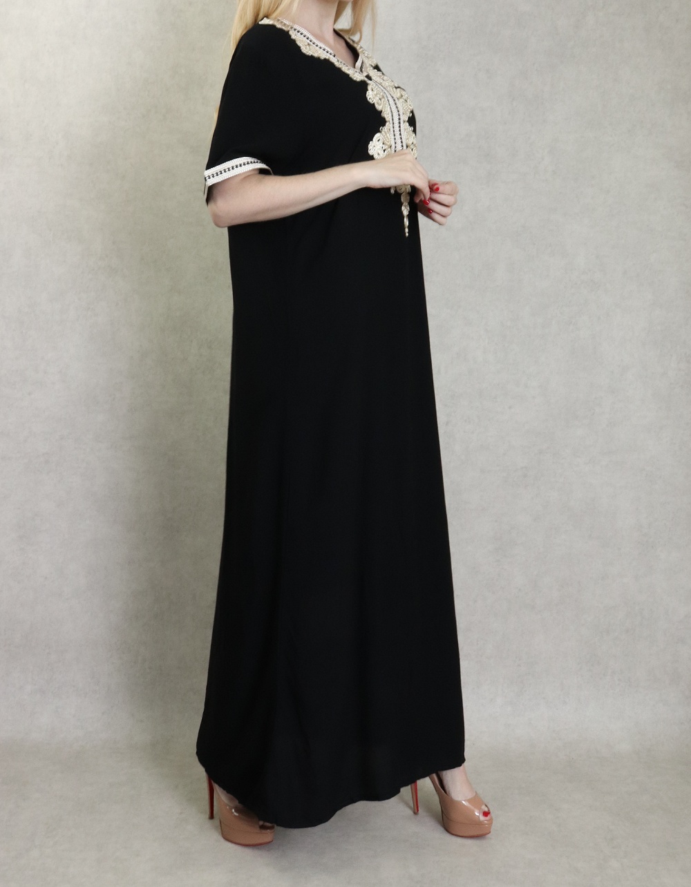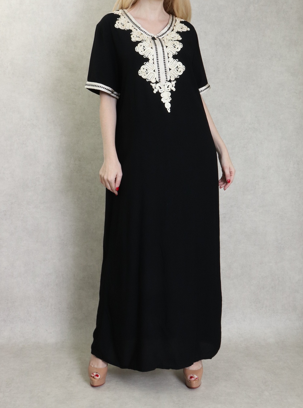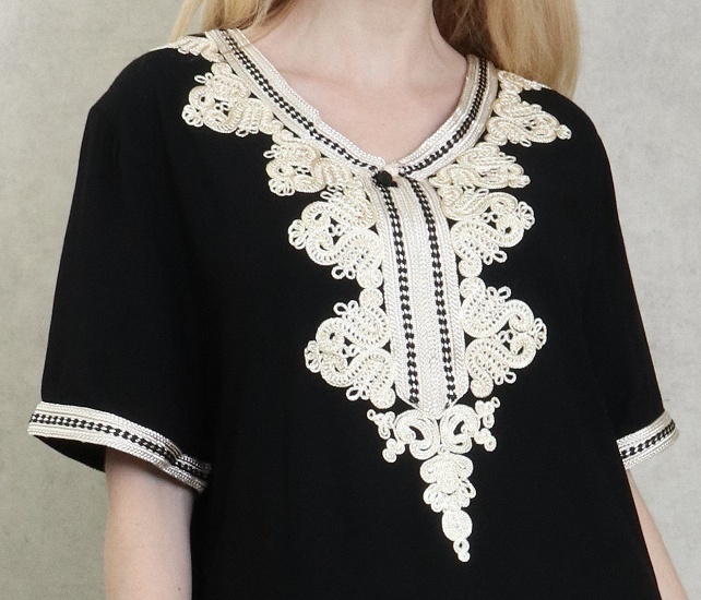 Robe orientale longue brodée manches courtes et décontractée pour femme - Couleur noir Vetement & Accessoire