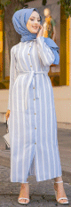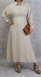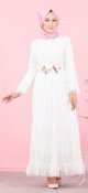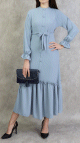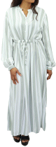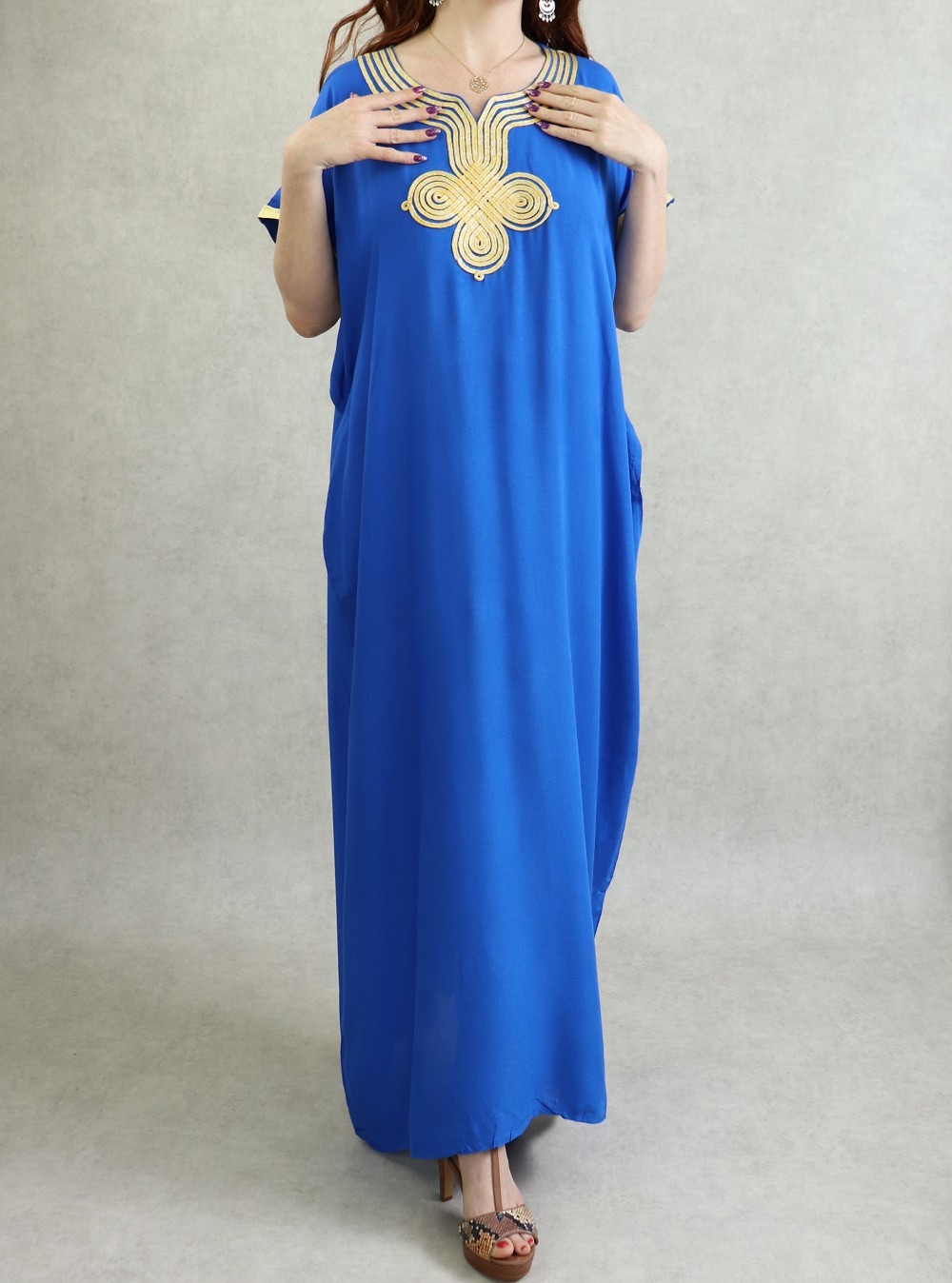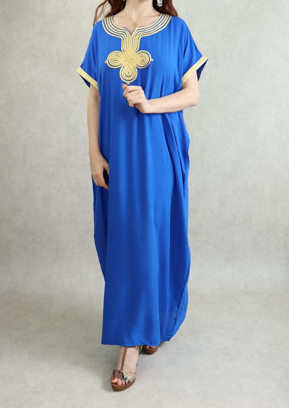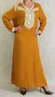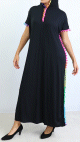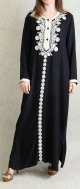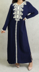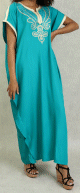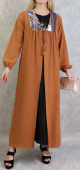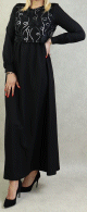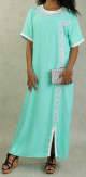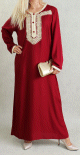 Cette robe "maxi confort" peut se porter cintrée grâce à une attache à l'intérieur du modèle. Les broderies de se style présentent sur l'avant et les manches rajoutent de la finesse à cette pièce.