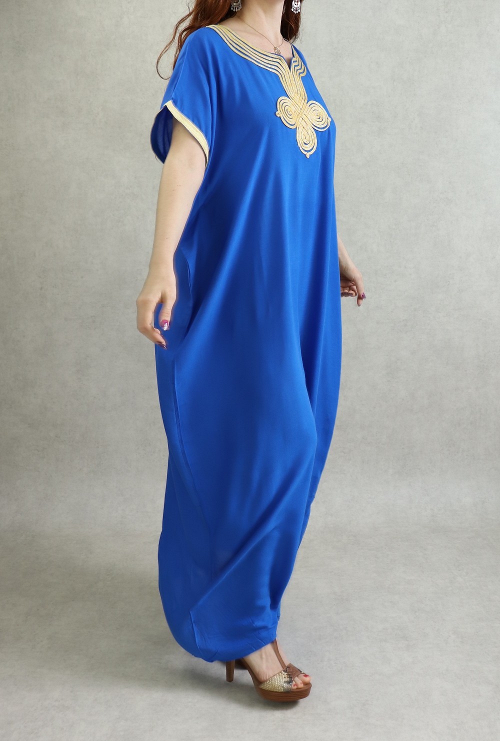 Belle robe avec un style oriental tunisien. Coupe droite, tissu fluide de type coton.