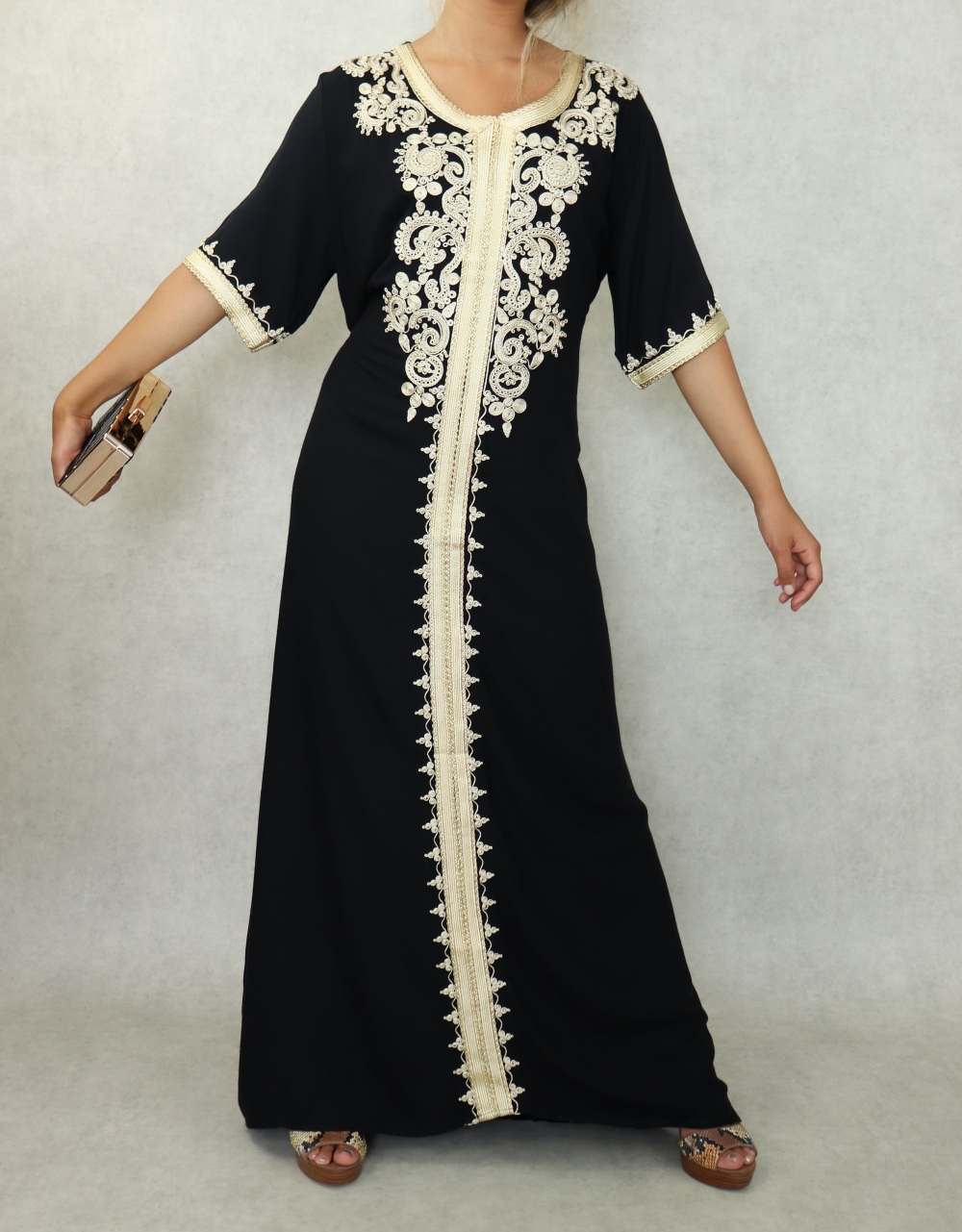 Robe orientale longue pour femme avec broderies dorees (Plusieurs couleurs disponibles)