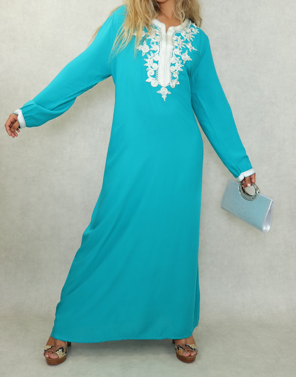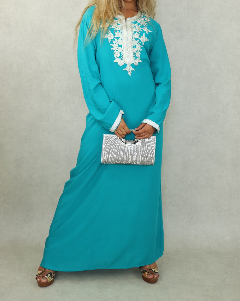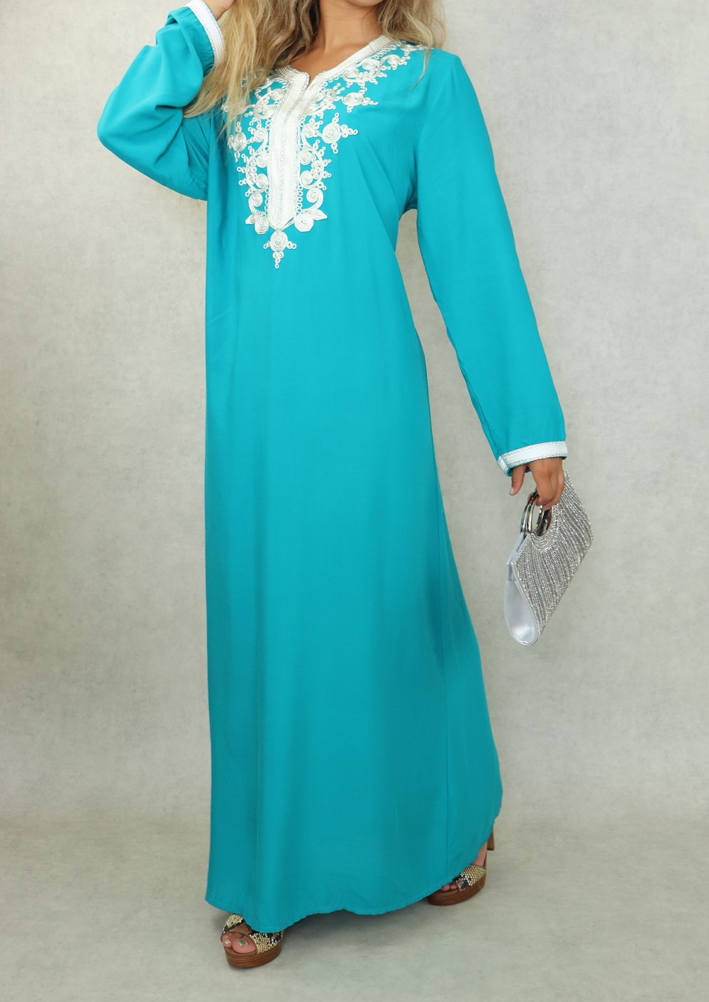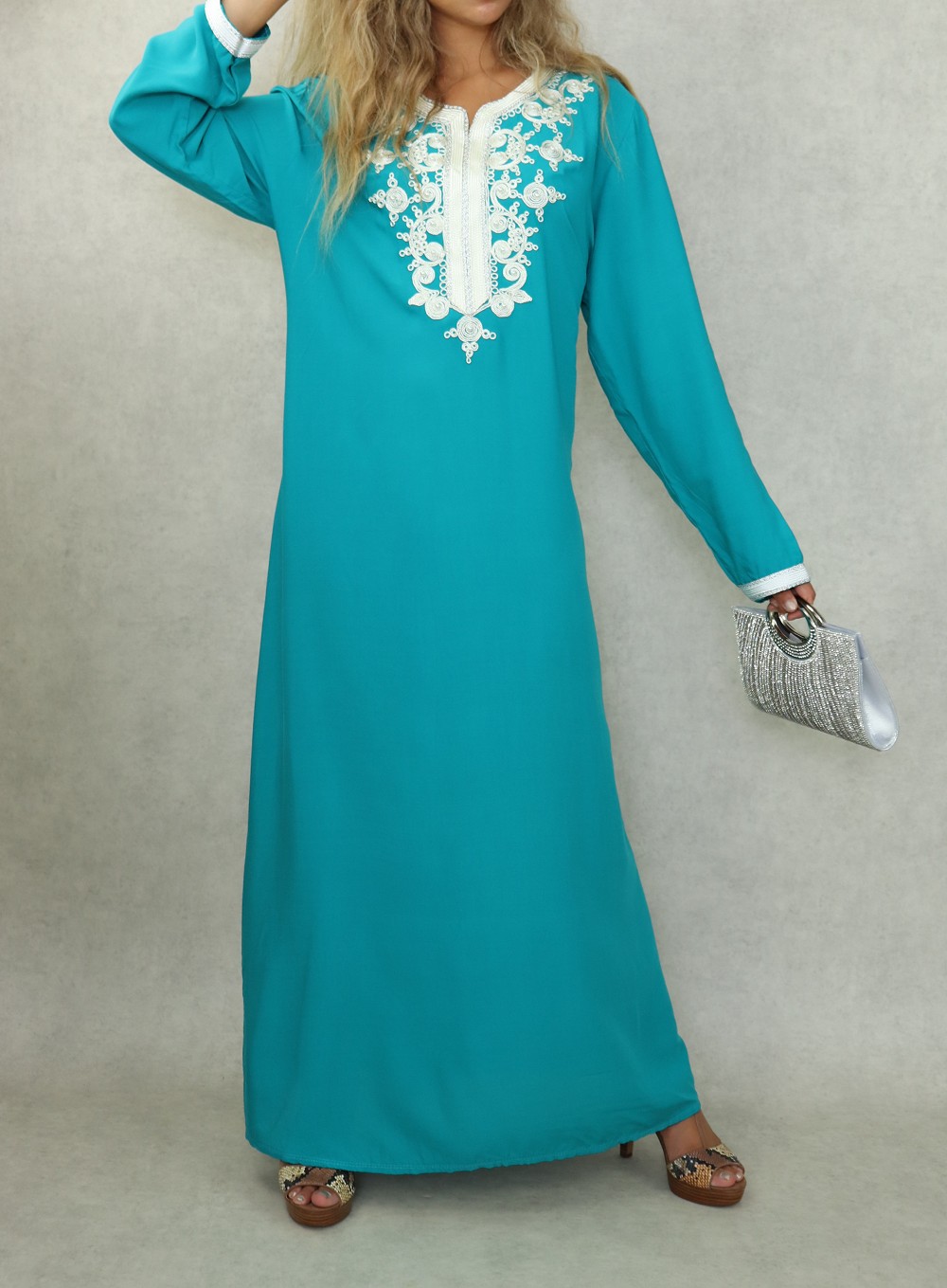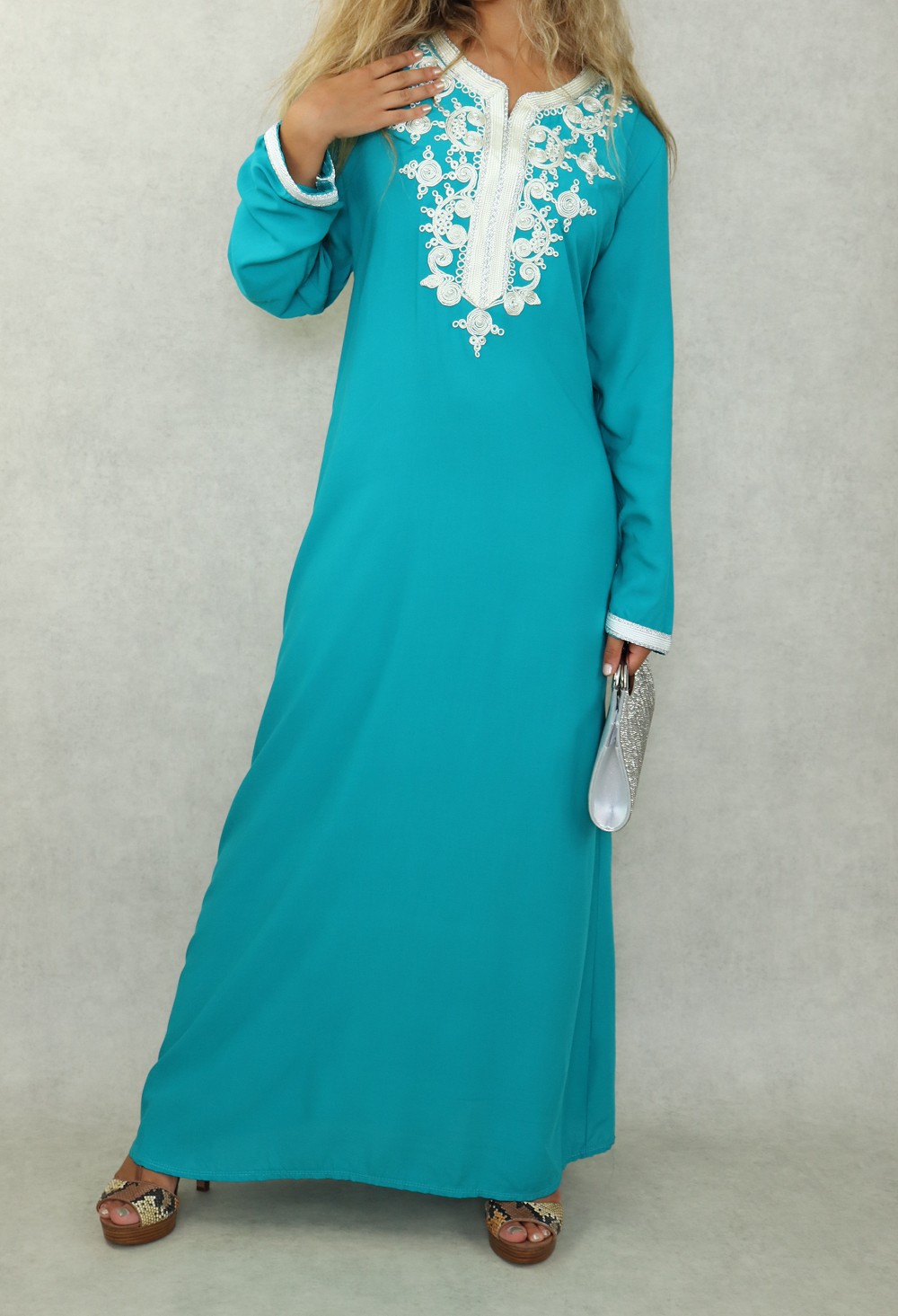 Robe Orientale pour femme avec broderies et strass - Couleur bleu pétrole - REF. 36072 (25.00 €)