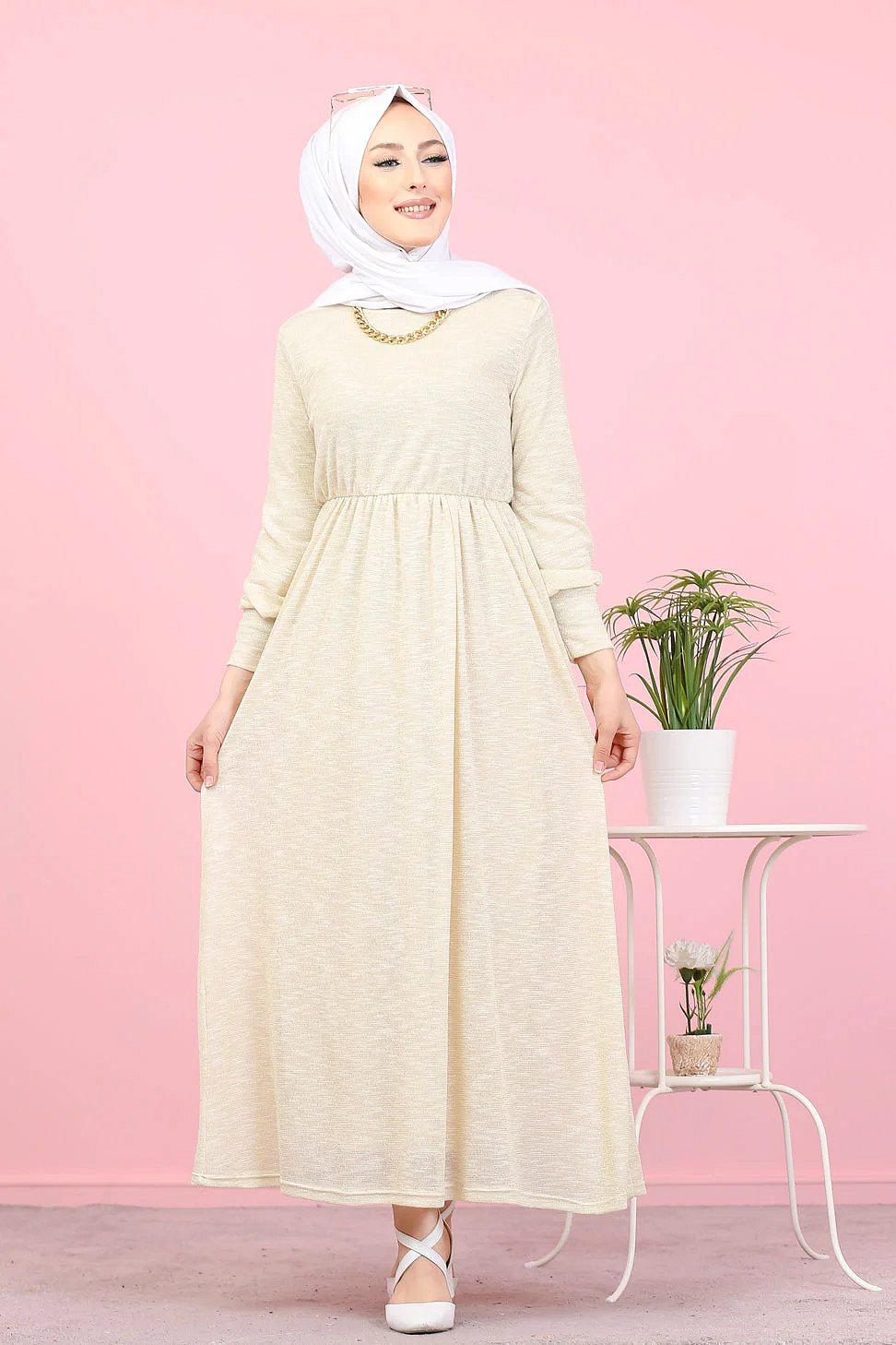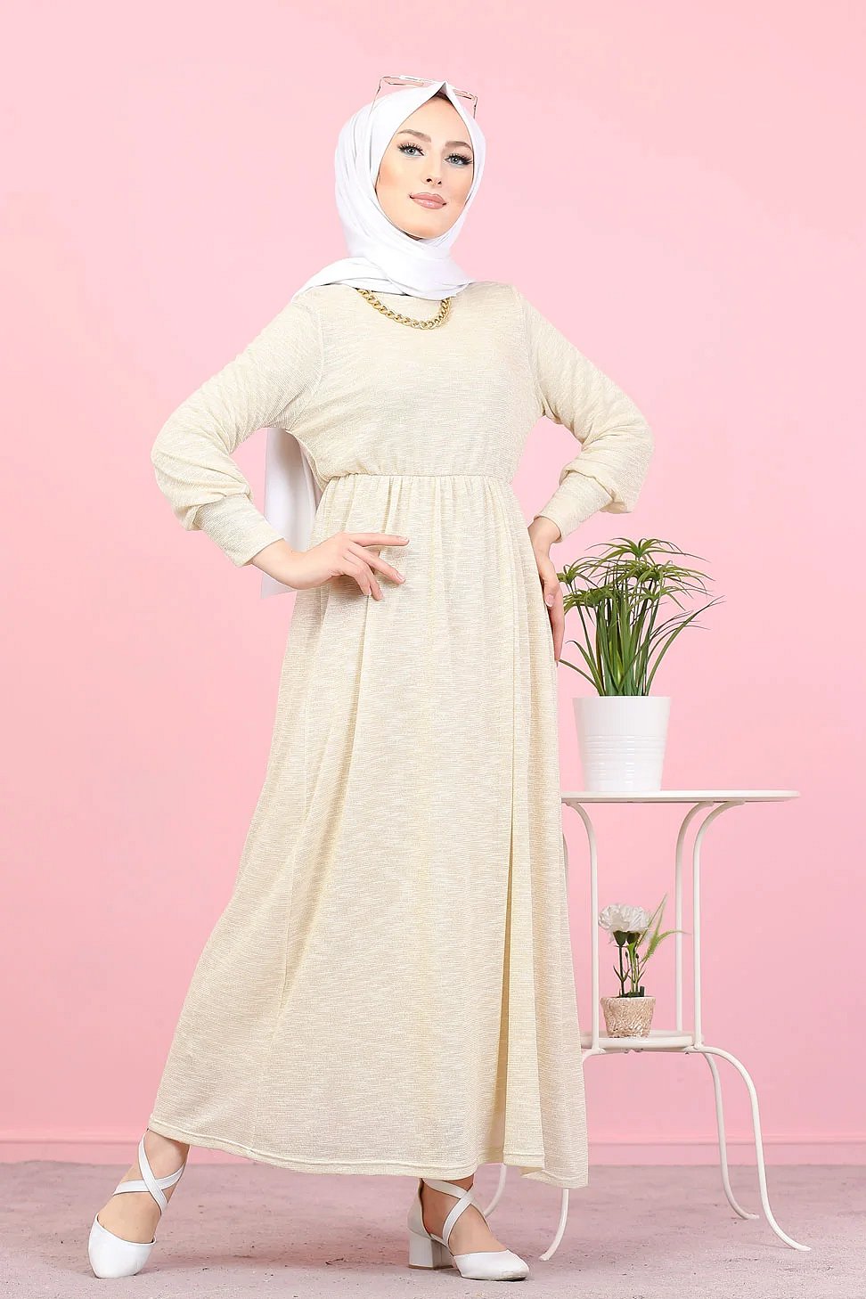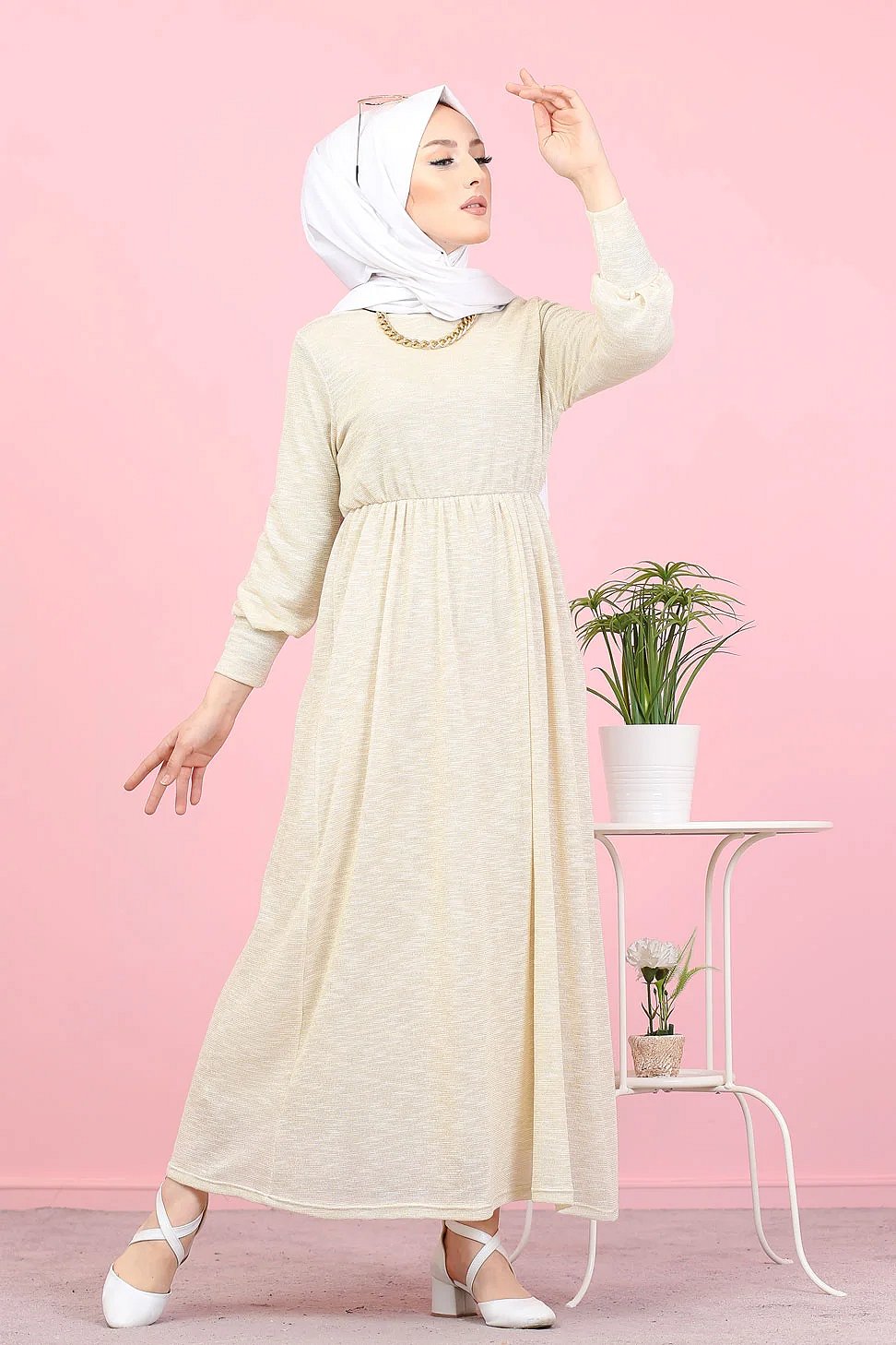 Robe pailleté pour femme (Boutique en ligne Hijab et Modest Fashion - Grande taille) - Couleur Crème Vetement & Accessoire