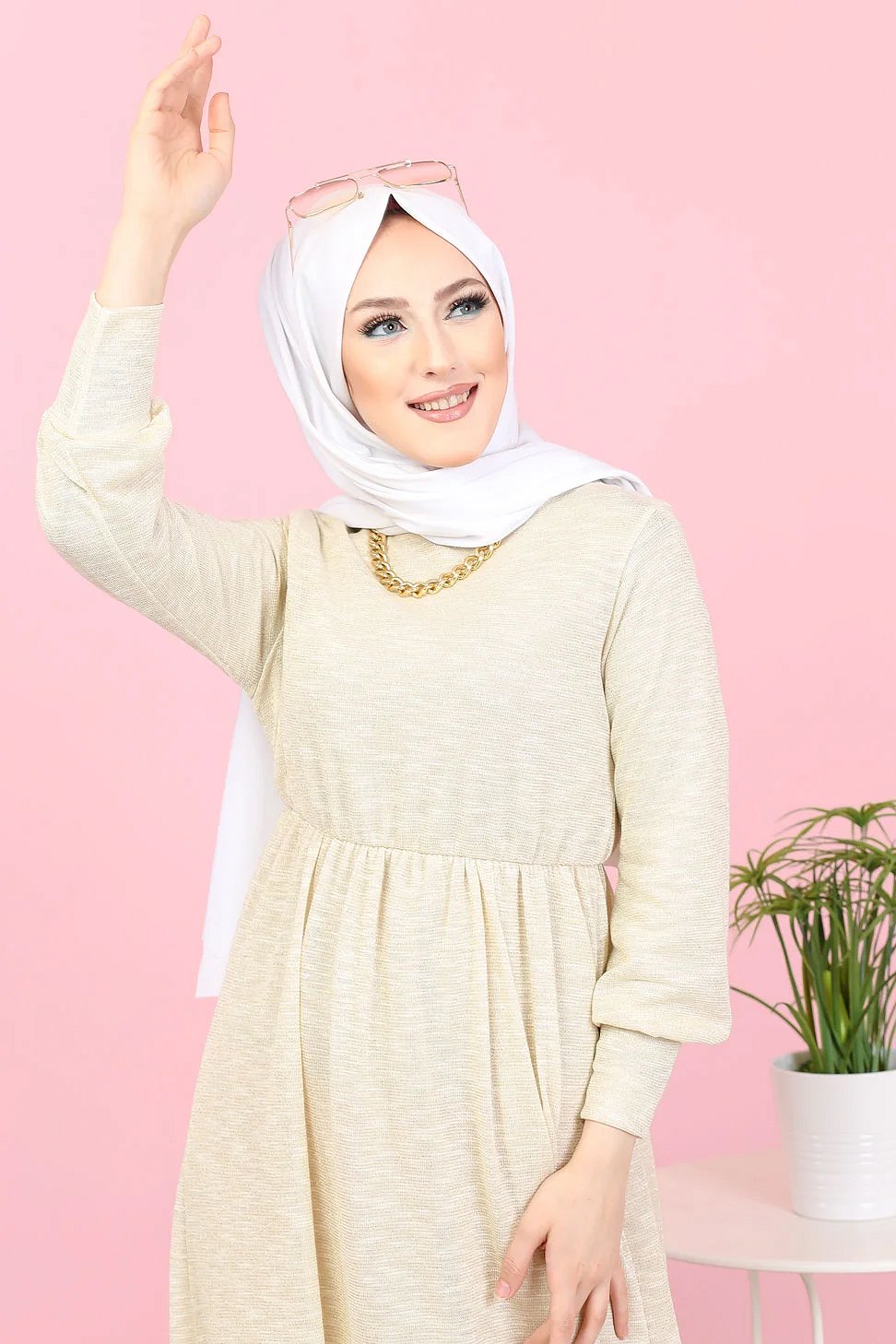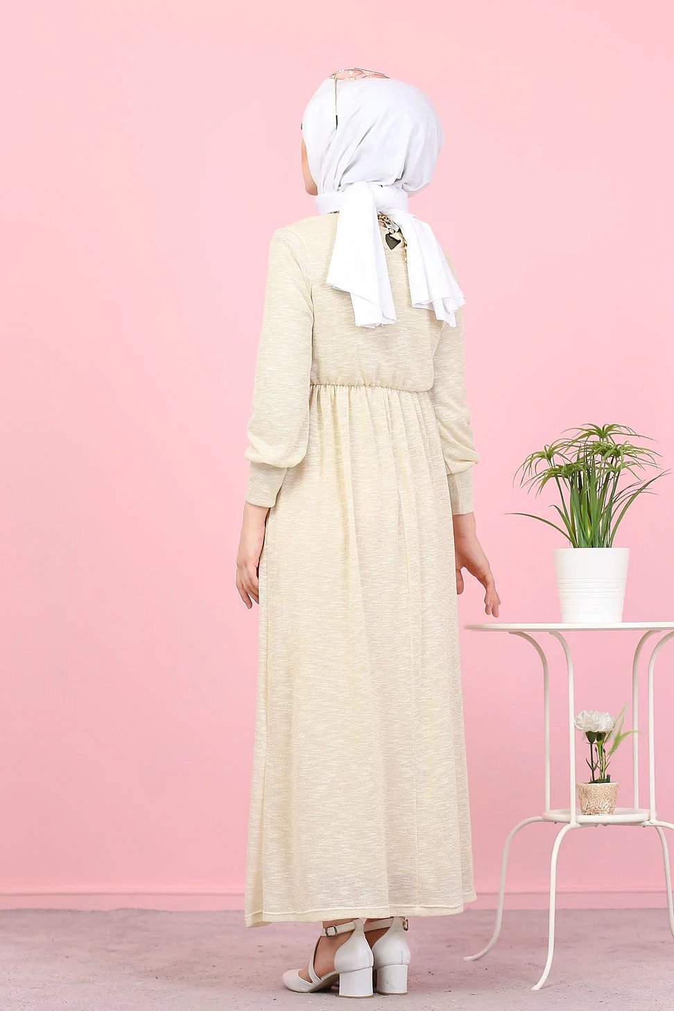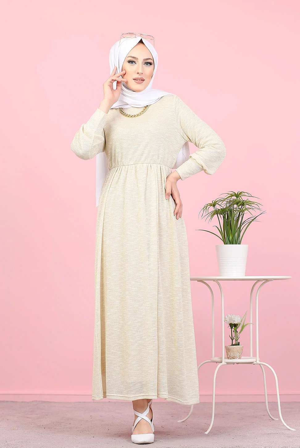 Robe pailleté pour femme (Boutique en ligne Hijab et Modest Fashion - Grande taille) - Couleur Crème Vetement & Accessoire