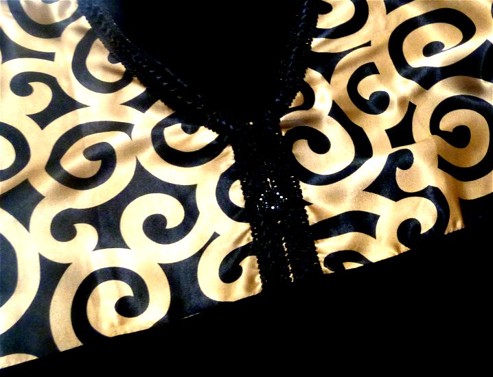 Abaya noire avec motifs dorés et écharpe noire assortie. (taille en cm approximative)