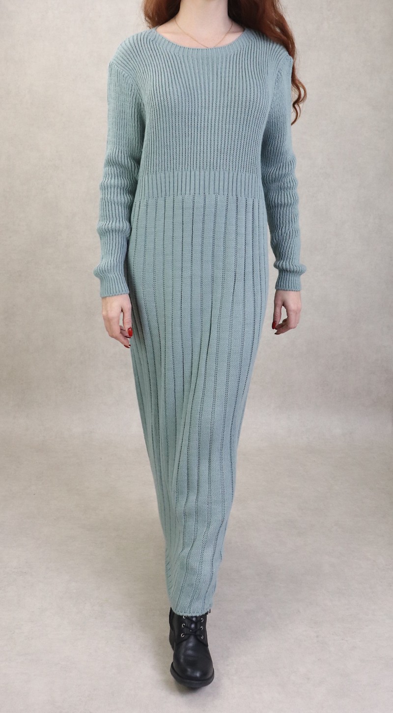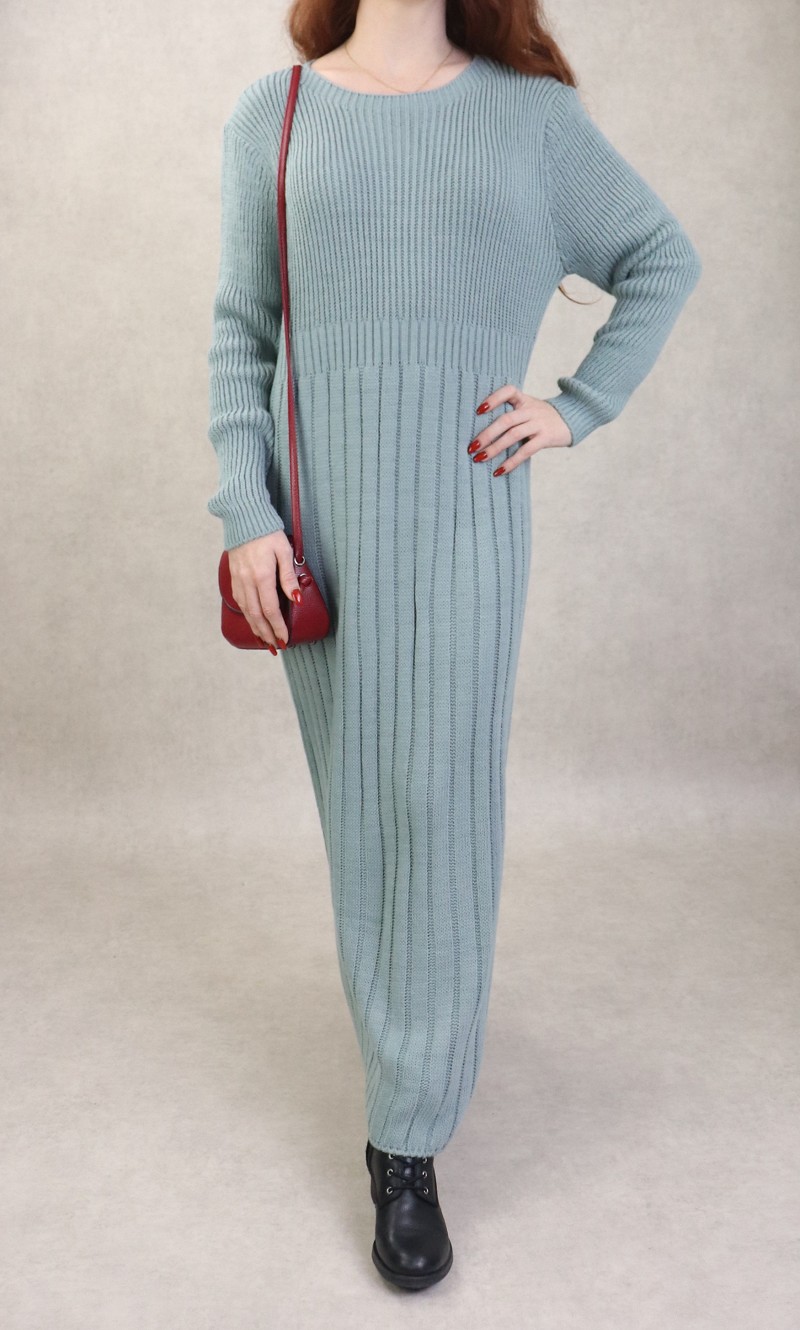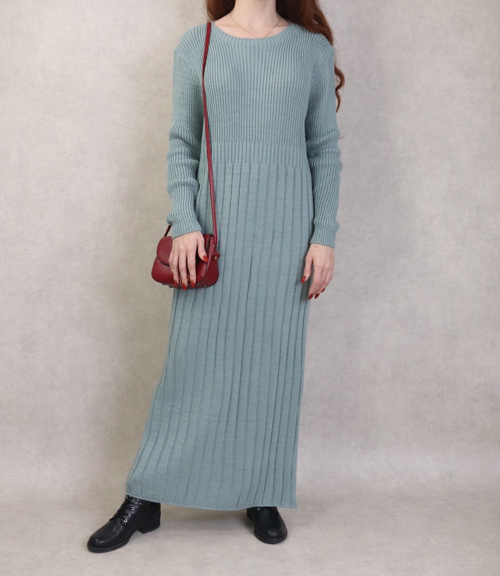 Robe simple en grosse maille pour femme (Saison Automne Hiver) - Couleur Vert amande Vetement & Accessoire