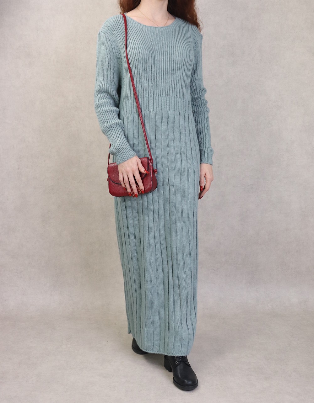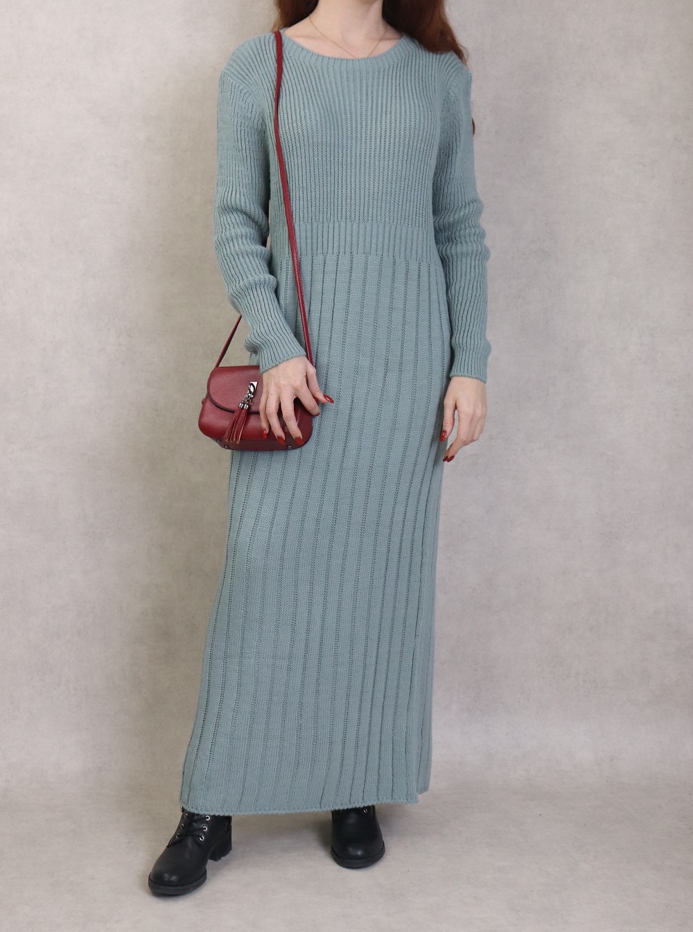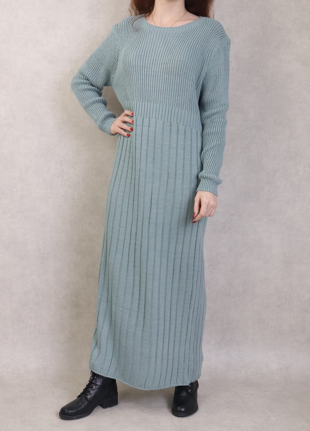 Robe simple en grosse maille pour femme (Saison Automne Hiver) - Couleur Vert amande Vetement & Accessoire