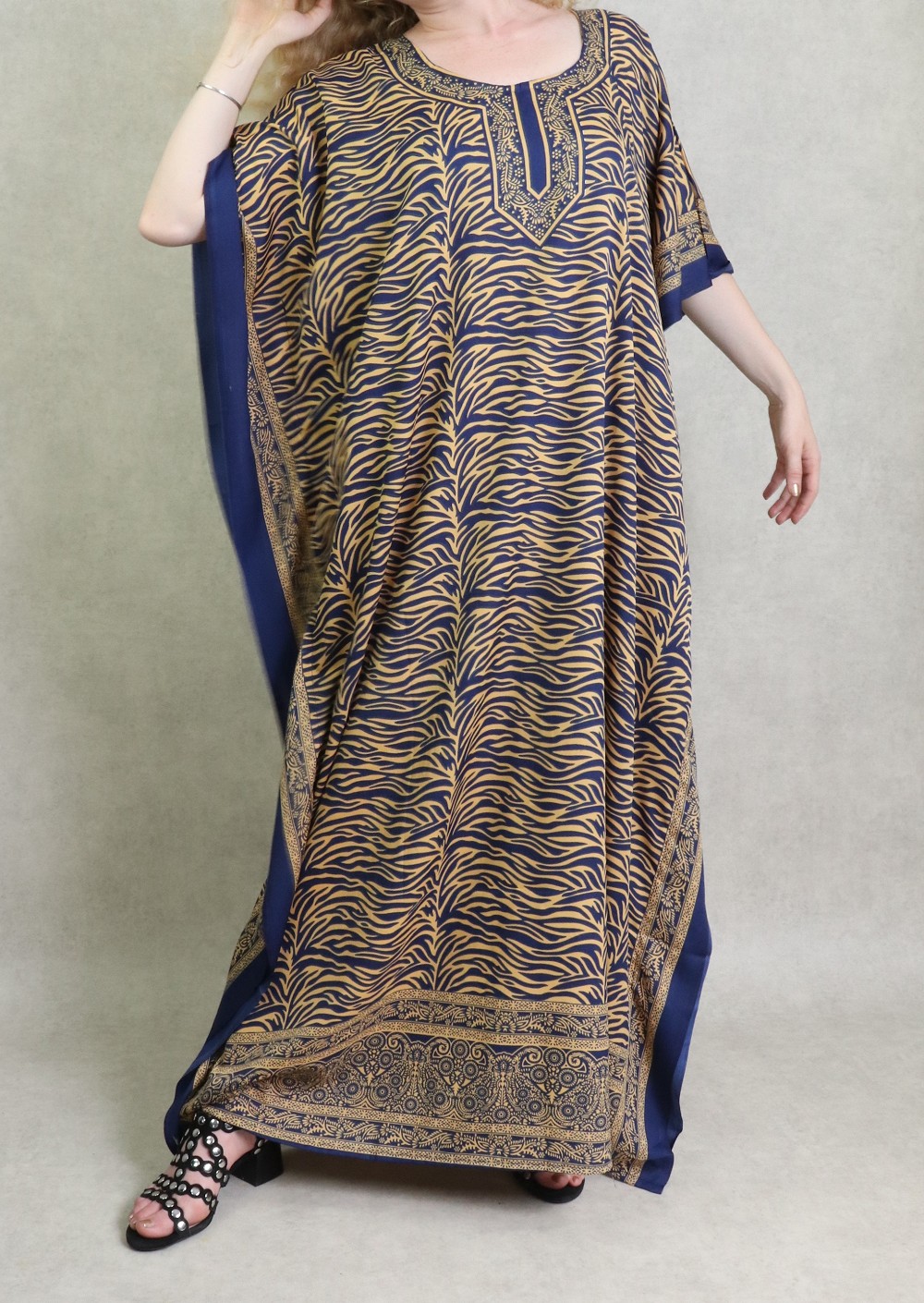 Robe style oriental pour la maison et l'ete (Robes extra-large et grande taille pour femme) - Couleur Motifs Bleu