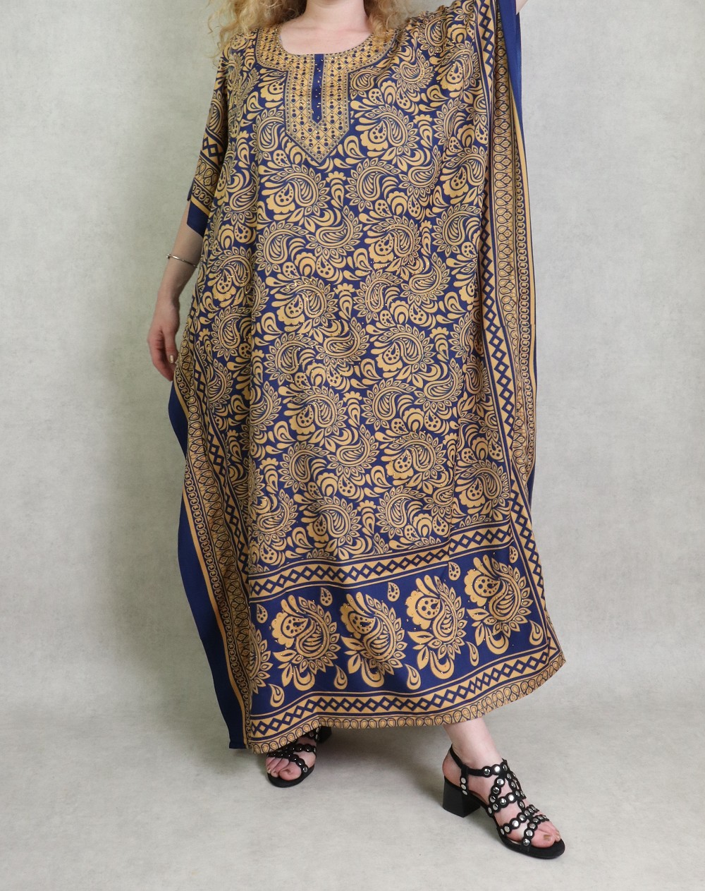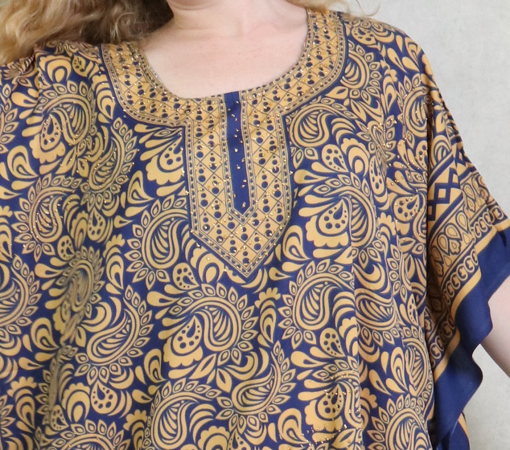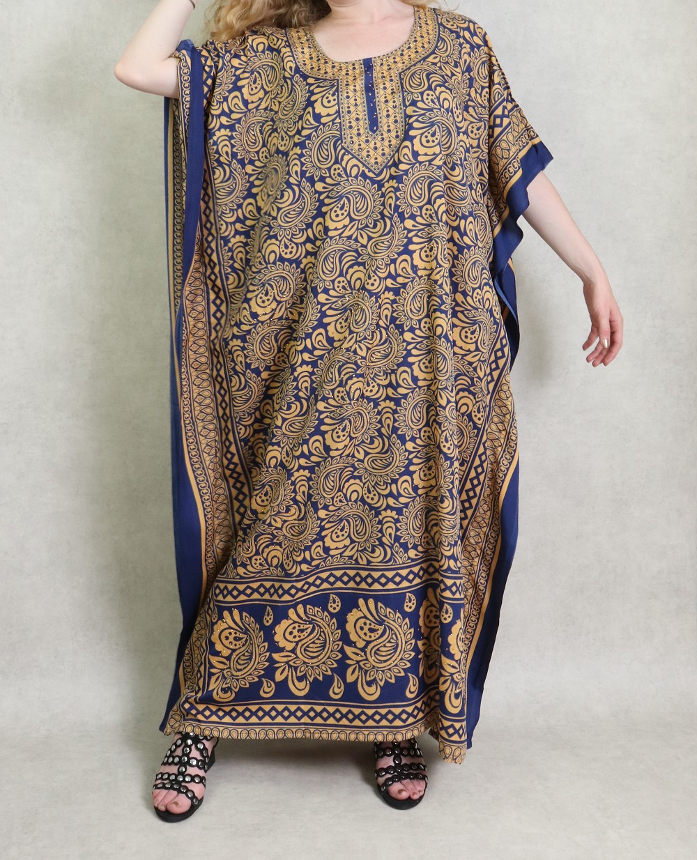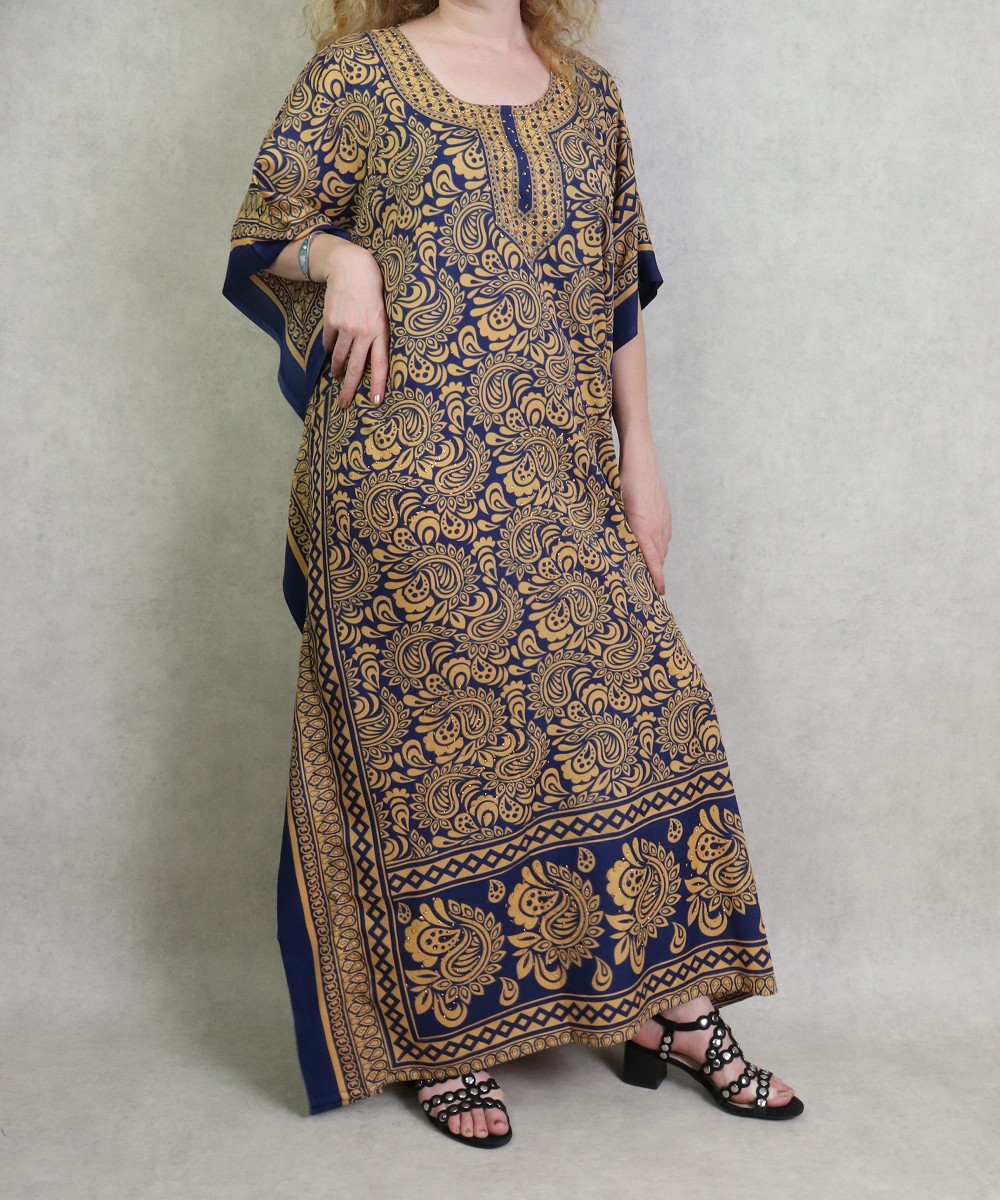 Robe style oriental pour la maison et l'été (Robes extra-large et grande taille pour femme) - Couleur Motifs Bleu Vetement & Accessoire