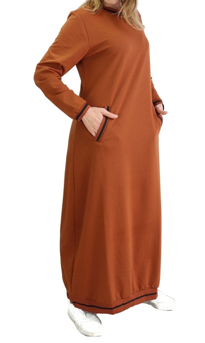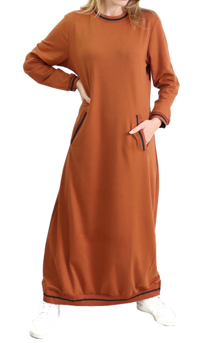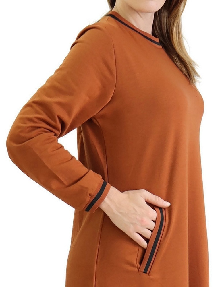 Robe longue, col rond, 2 poches latérales, bordures côtelées. Changez de style avec ce modèle décontracté de matière douce pour un confort ultime.