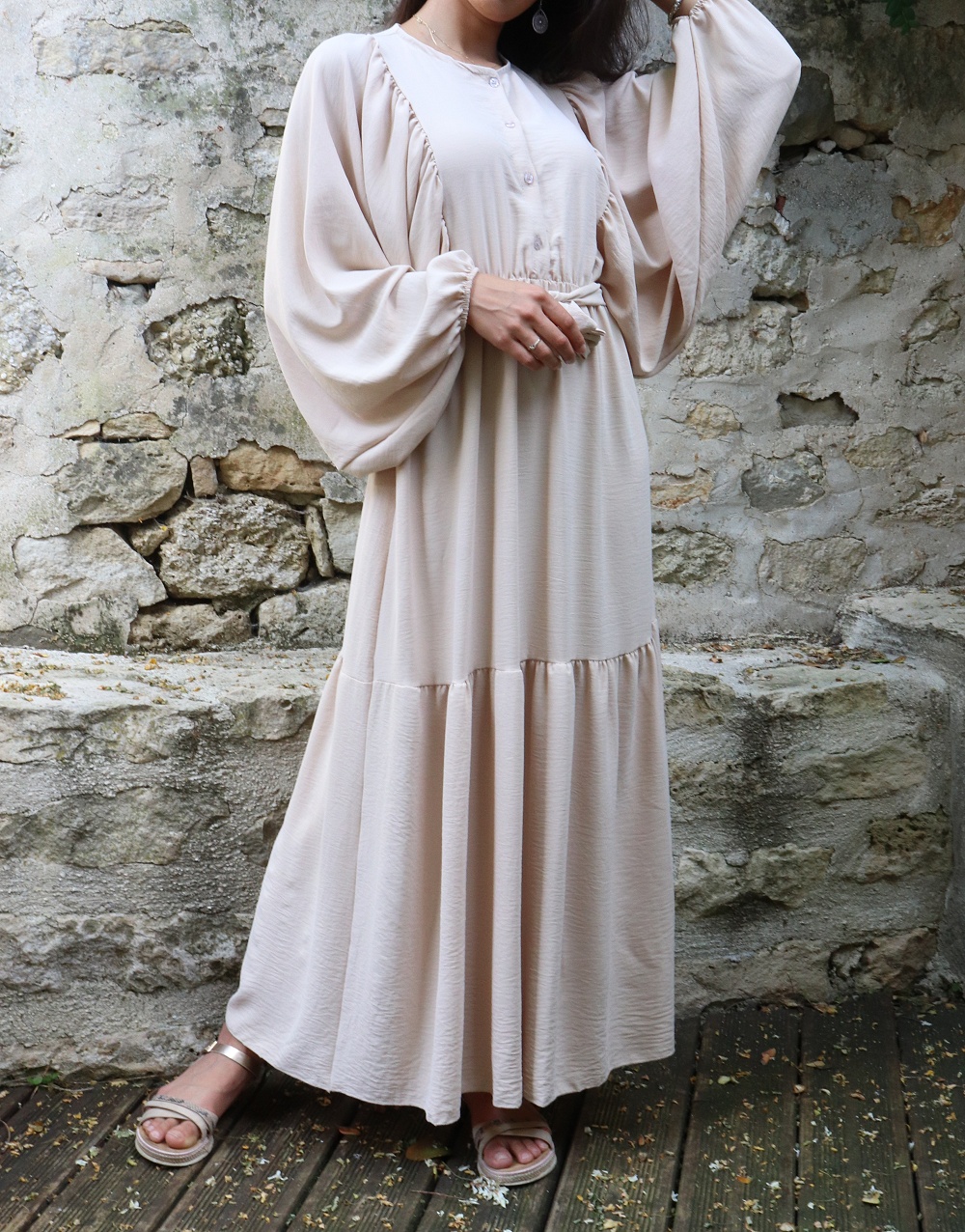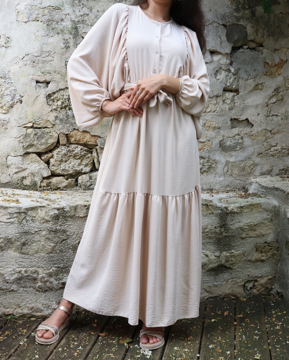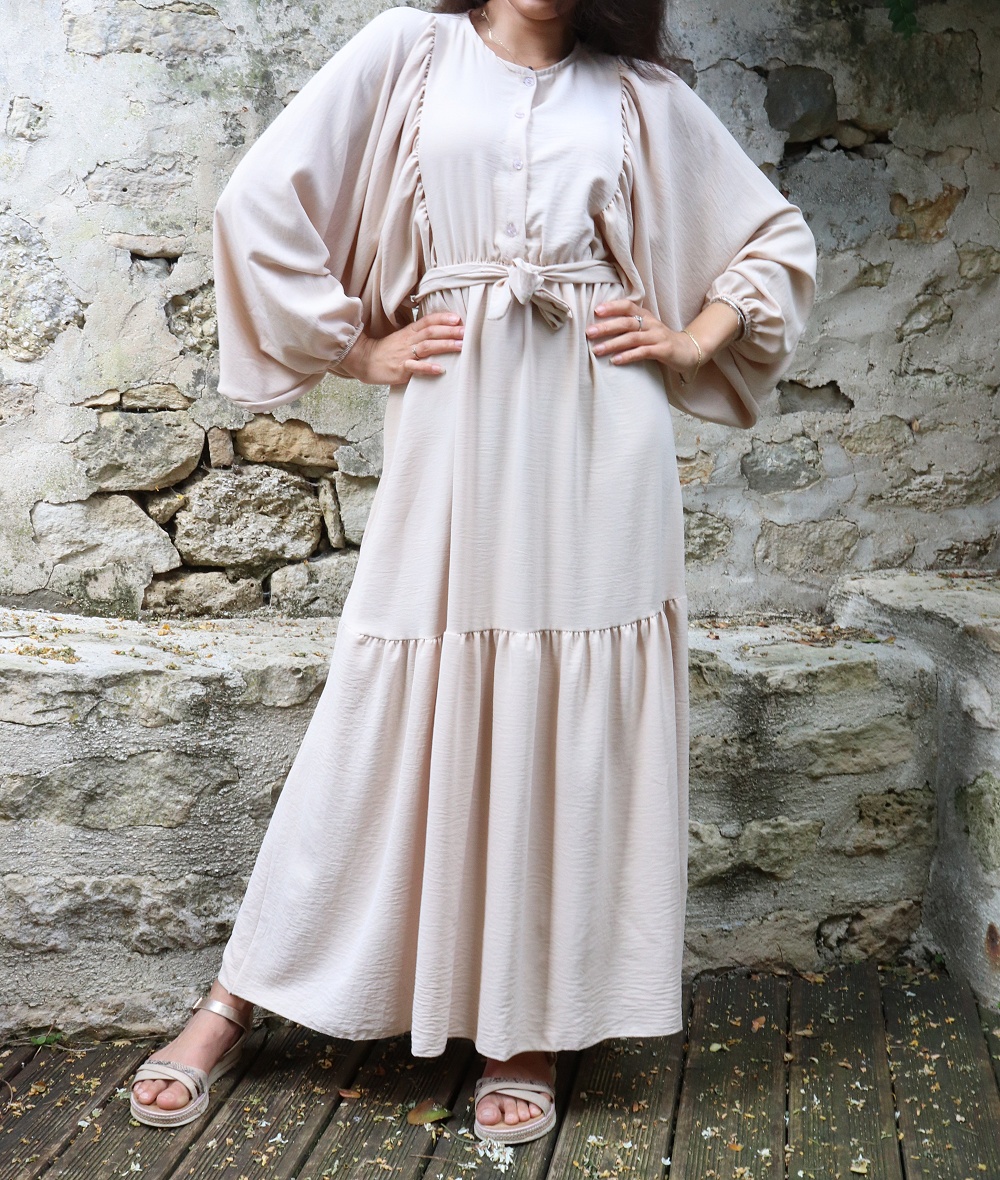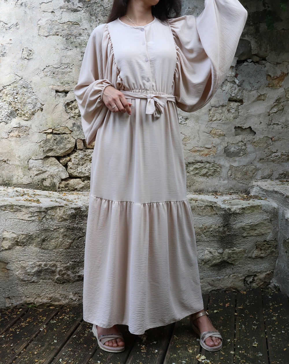 Robe longue habillée avec ceinture pour femme (Vêtement chic pour hijab) - Couleur beige clair - REF. 36617 (32.00 €)