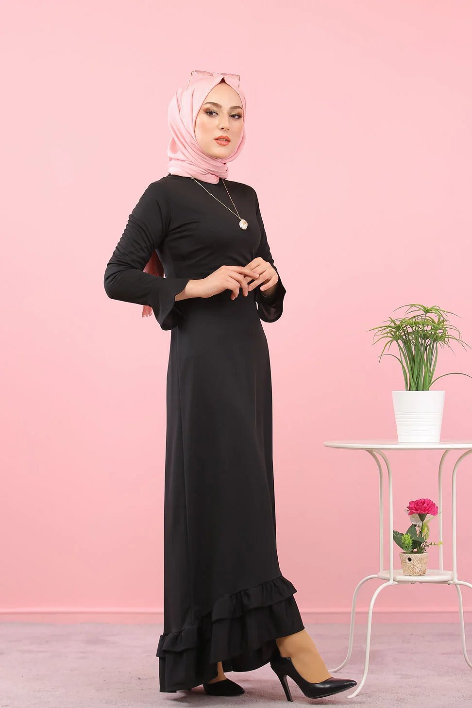 Robe très longue à volants (Abaya et vetement spécial femme voilée) - Couleur noire Vetement & Accessoire