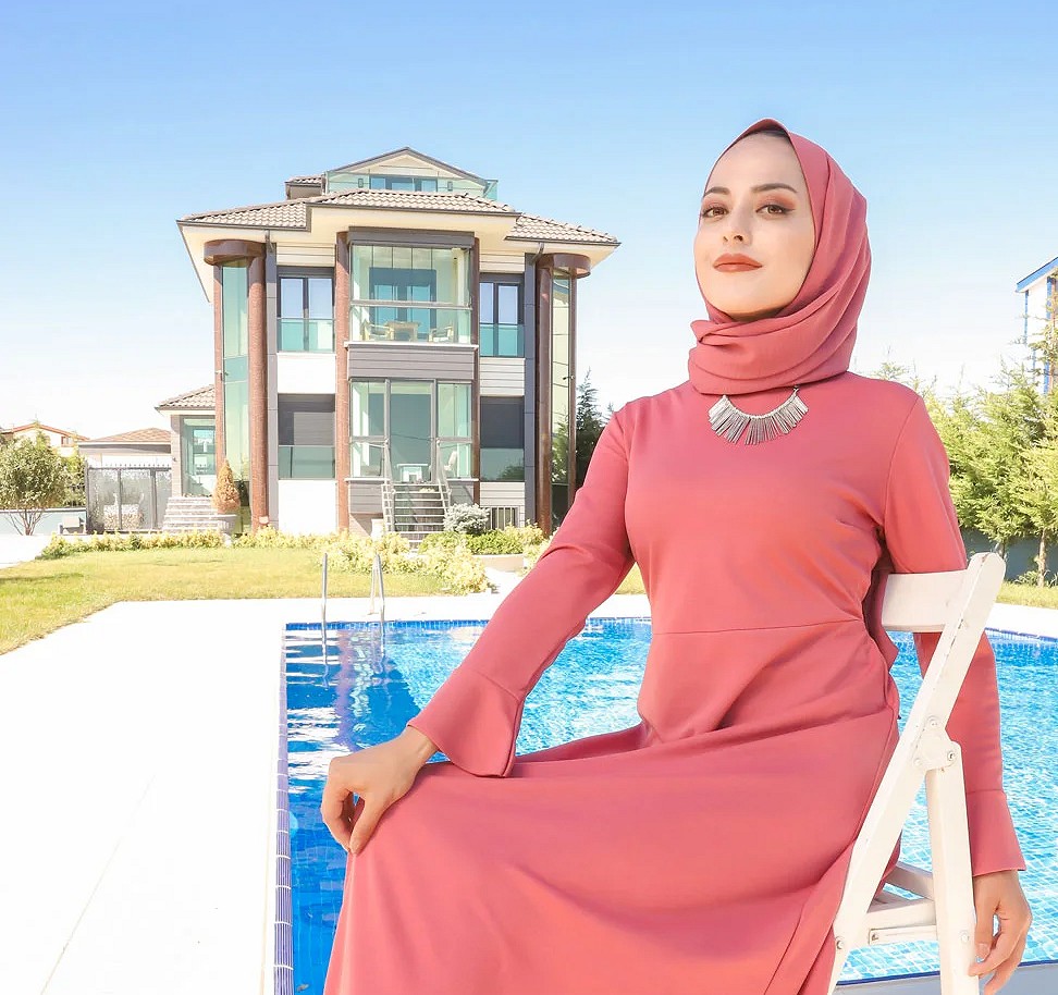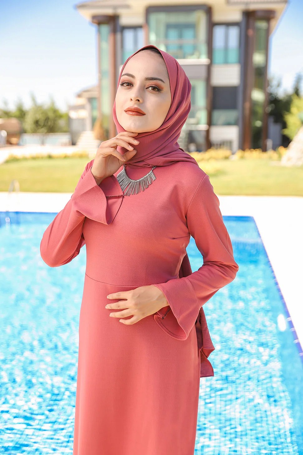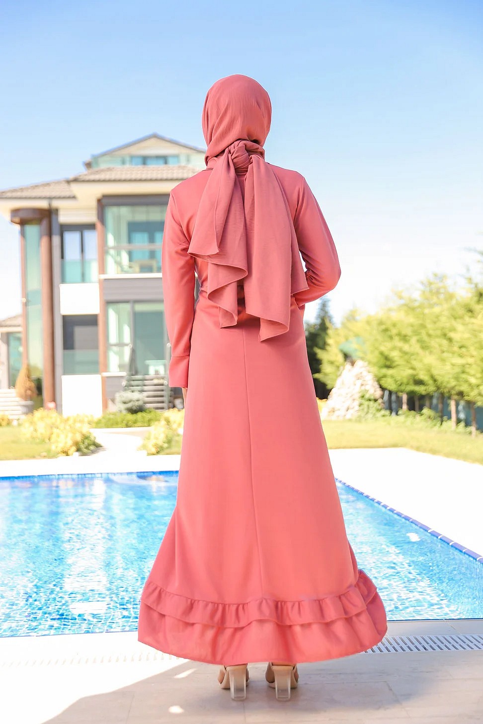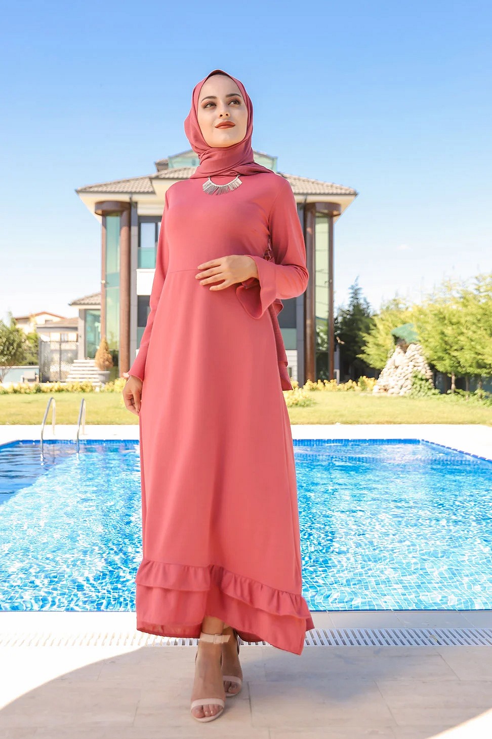 Robe tres longue a volants (Abayas et vetements pour femmes voilees) - Couleur Rose