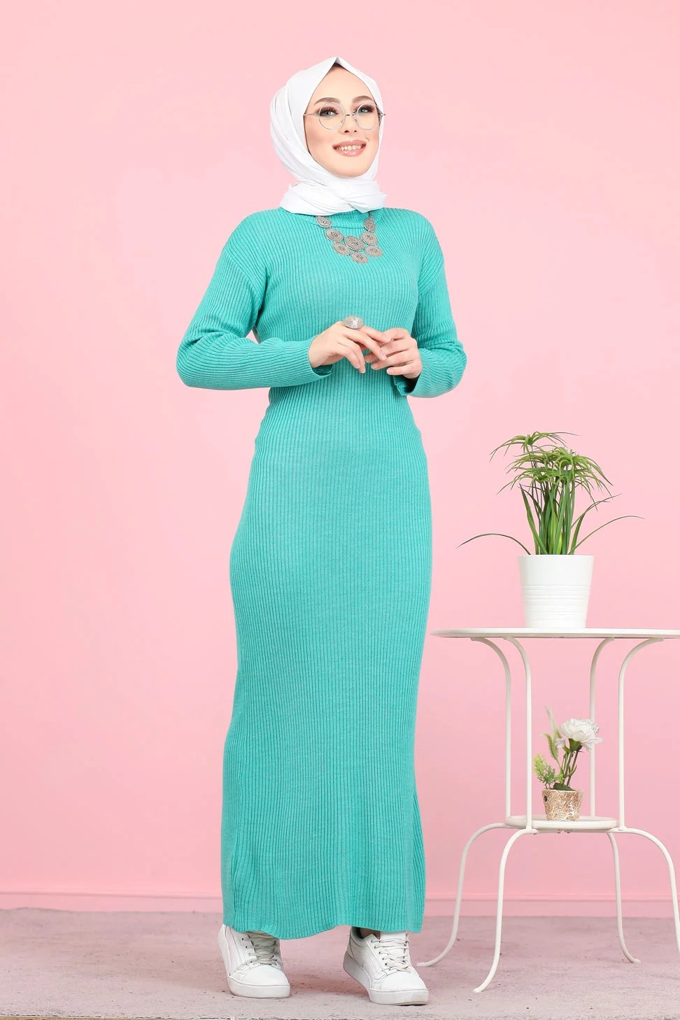 Robe de soirée longue perlée chic et classe (Vêtement hijab habillé pour femme) - Couleur menthe - REF. 37757 (36.00 €)