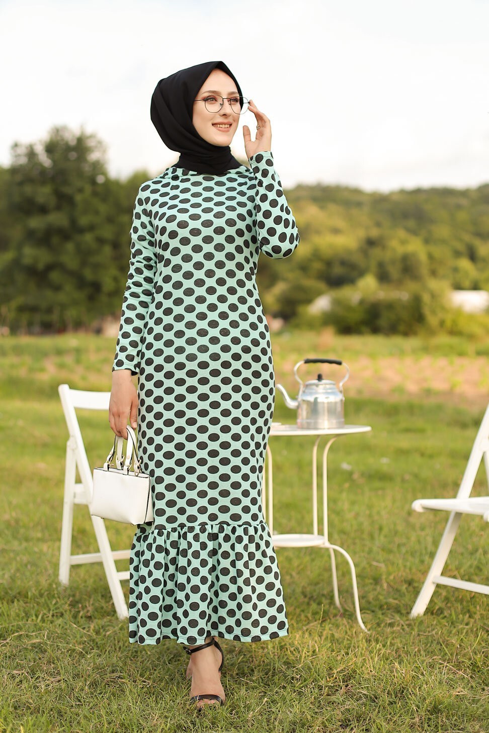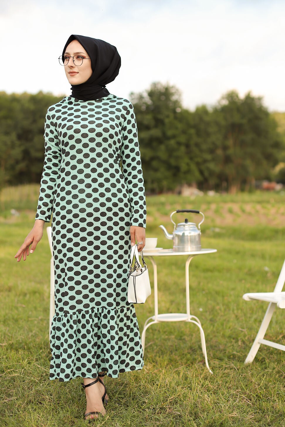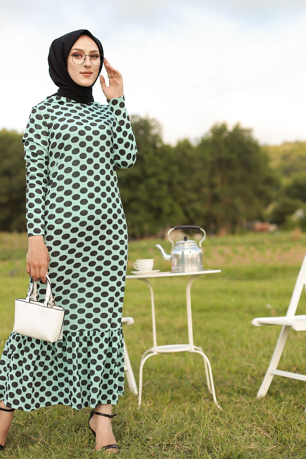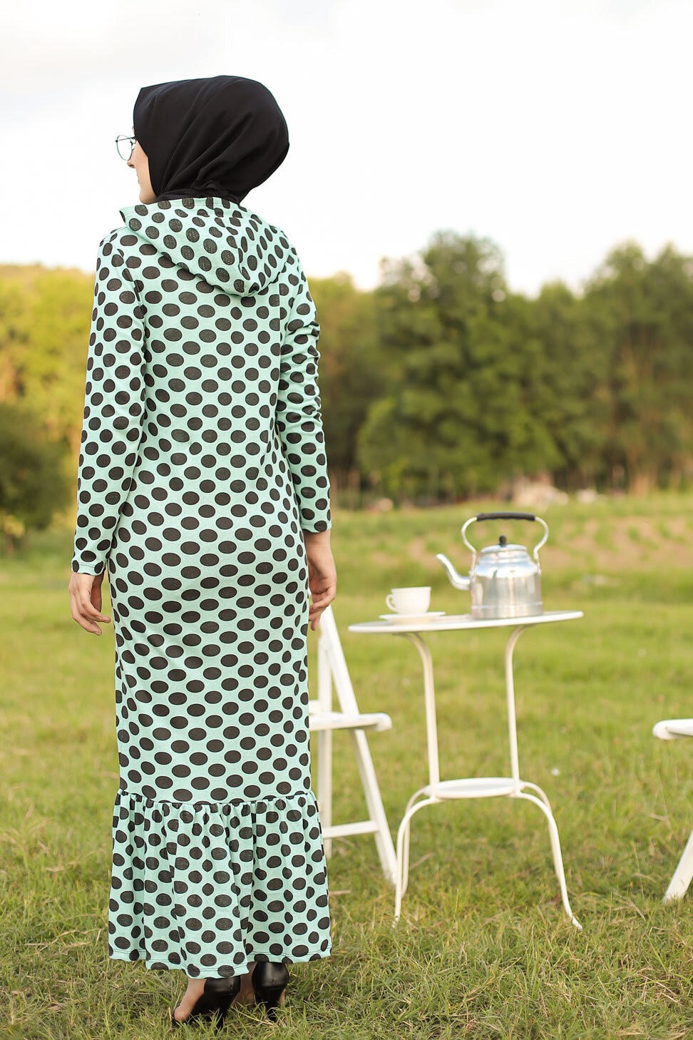Robe volantee a capuche imprimee a pois noirs (Vetements pour femmes voiles) - Couleur menthe