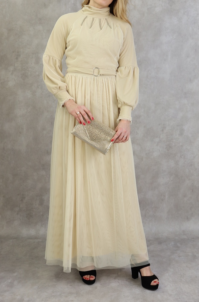 Sac à main femme - Pochette brodée embrayage chic - Couleur Marron Clair - REF. 31610 (12.90 €)