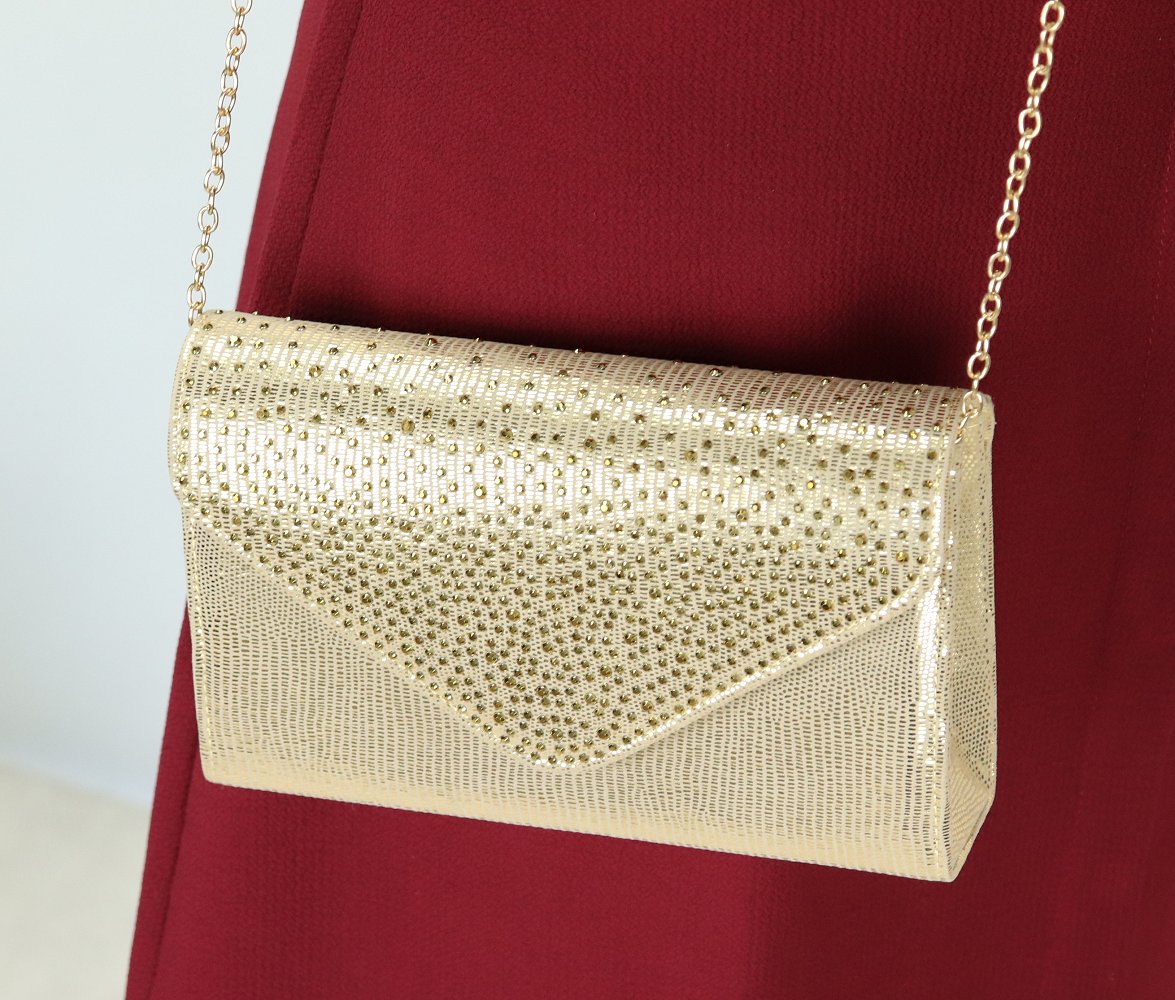Sac a main avec strass pour femme - Couleur doree