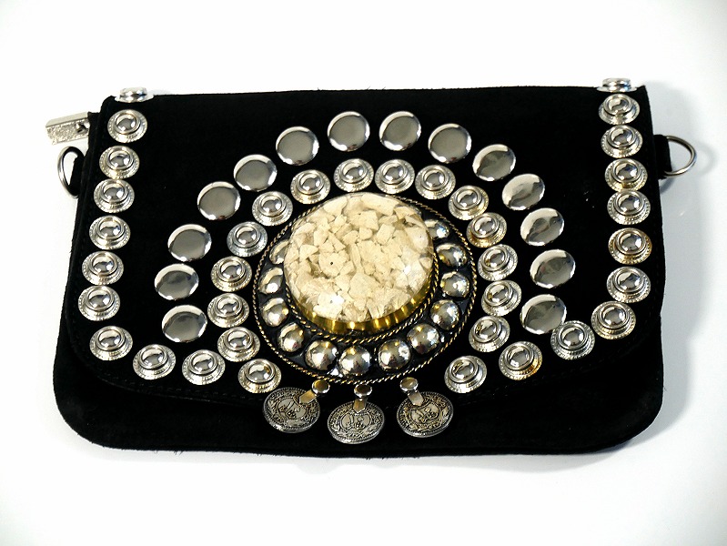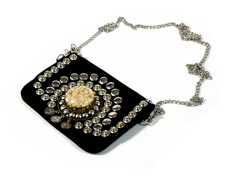 Sac à main cuir daim noir Ornement de pierres coulées dans un bloc de résine Vetement & Accessoire