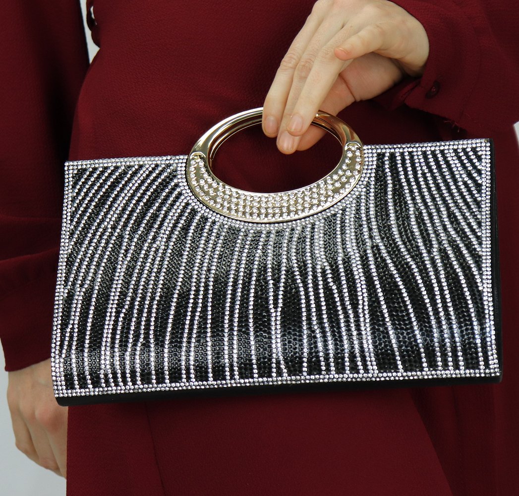Sac à main femme - Pochette brodée embrayage chic - Couleur Noir - REF. 32166 (12.90 €)