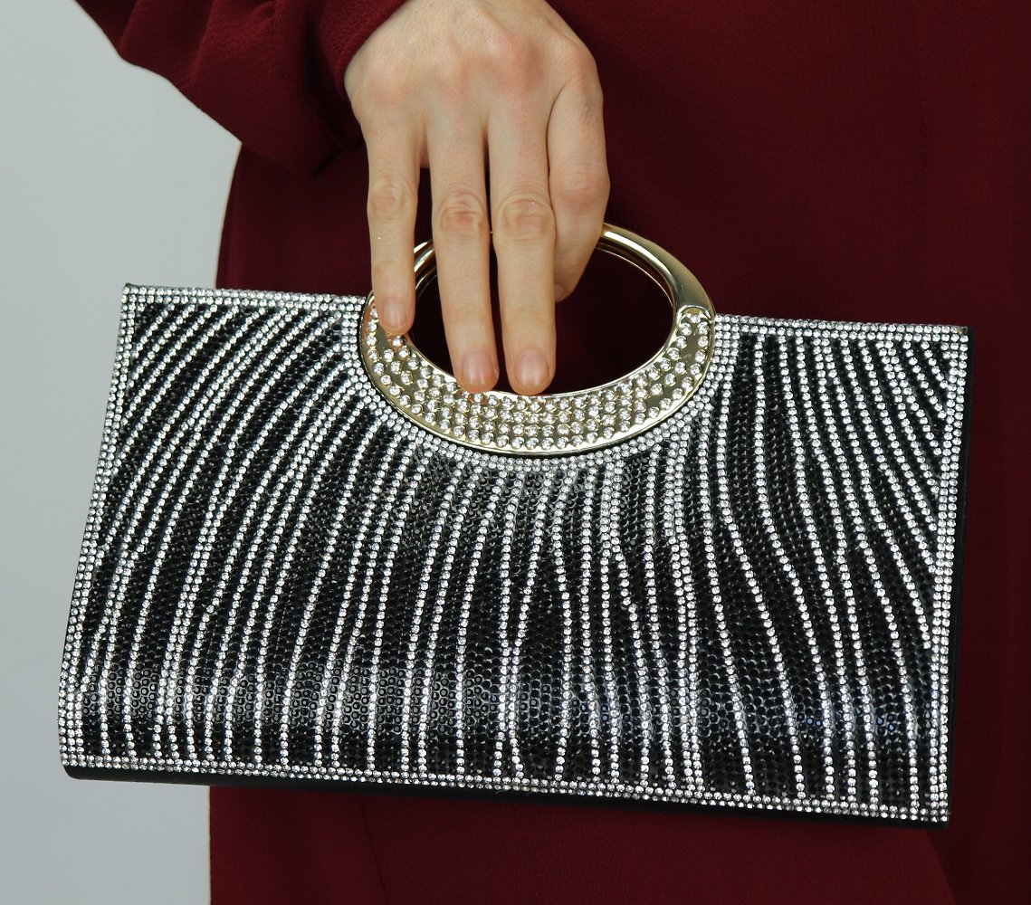 Sac à main de soirée - Pochette poignet métallique femme strass bandoulière chaîne démontable - Noir Vetement & Accessoire