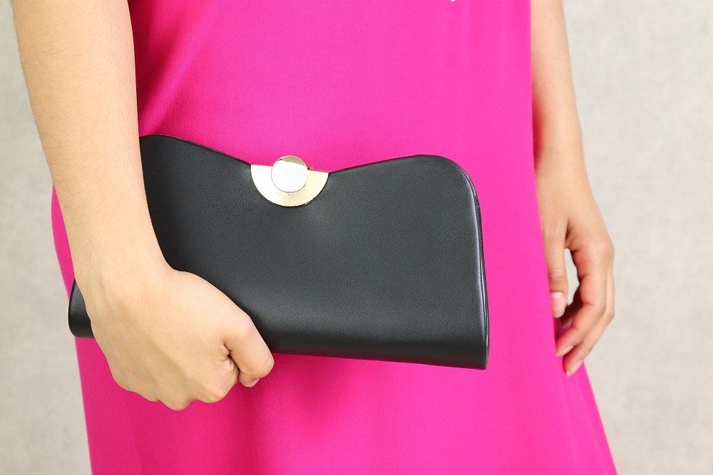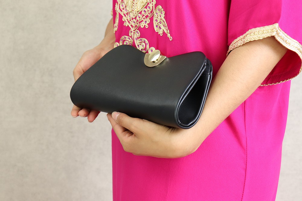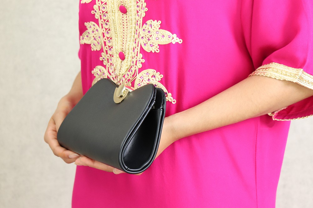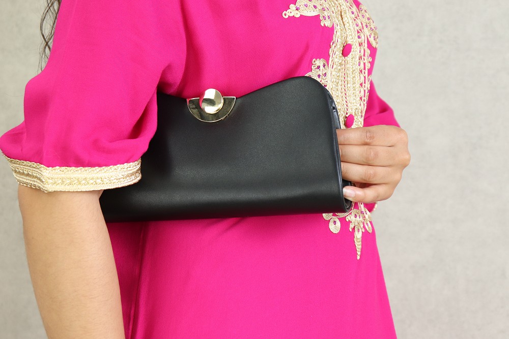 Décoration métallique au niveau de la fermeture pression. Ce sac femme est parfait pour transporter juste l’essentiel et accessoiriser une tenue élégante. Il se porte à la main ou sur l’épaule grâce à une jolie bandoulière en chaîne métallique dorée.