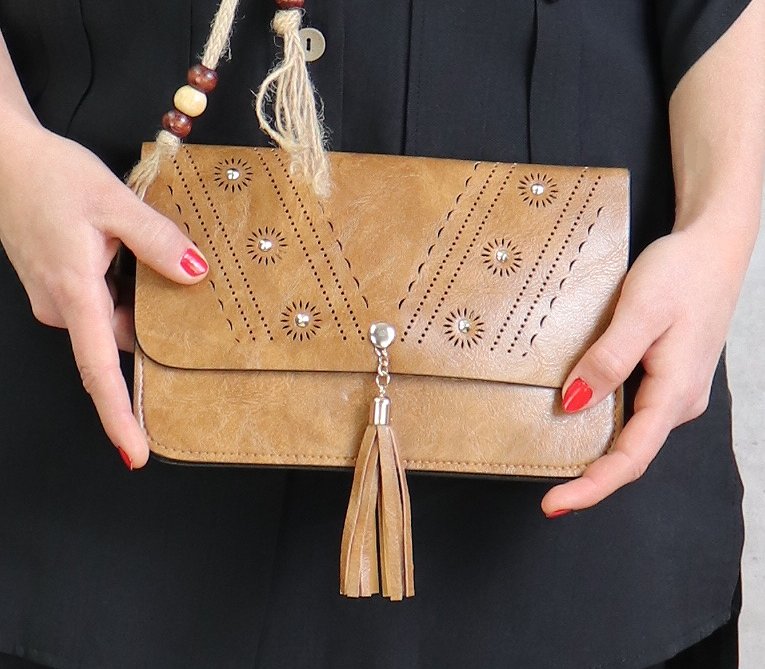 Sac a main pour femme - Pochette a bandouliere - Couleur Caramel