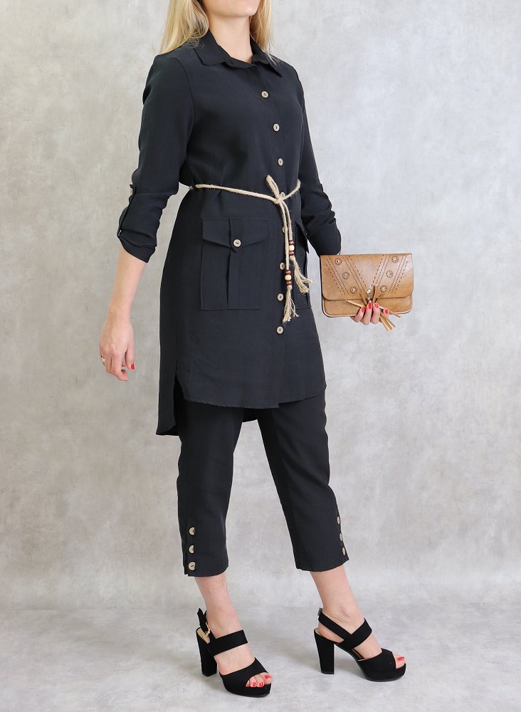Sac à main cuir daim noir Ornement de pierres coulées dans un bloc de résine - REF. 29894 (45.00 €)