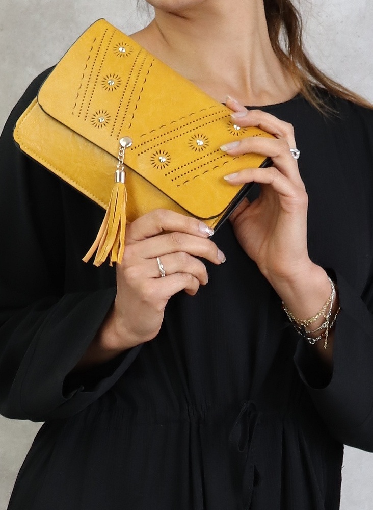 Sac a main pour femme - Pochette a bandouliere - Couleur jaune moutarde
