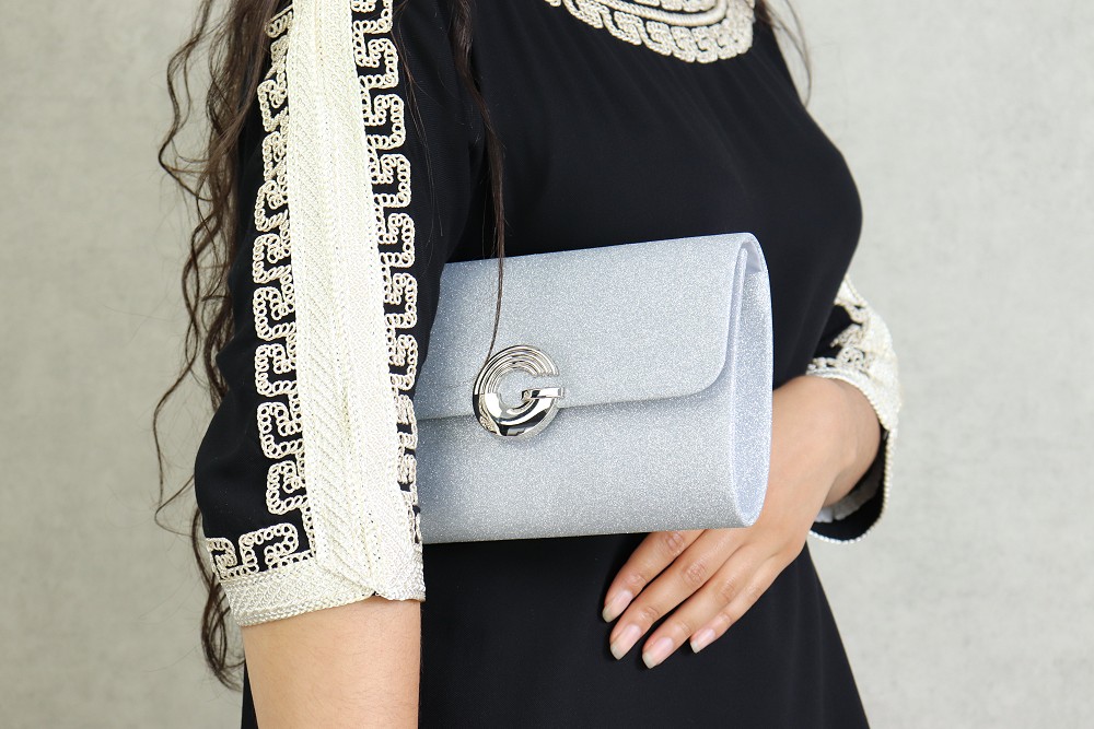 Sac a main pour femme - Pochette avec bandouliere - Couleur argente