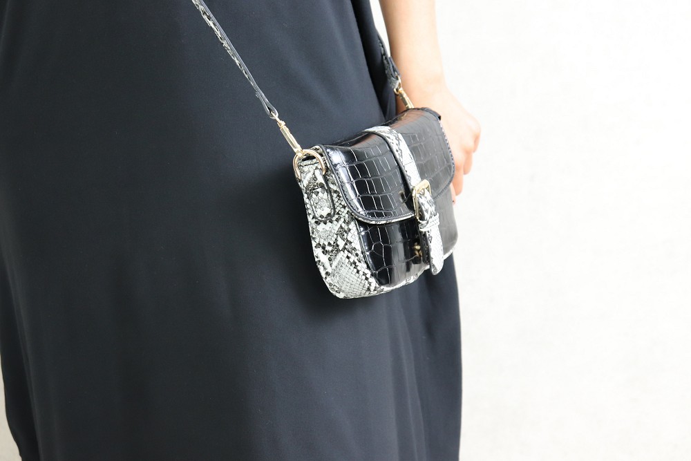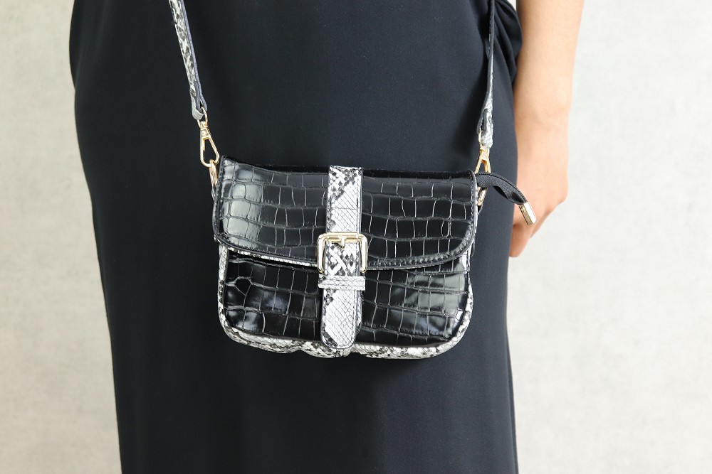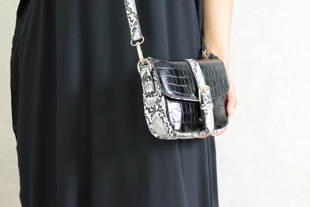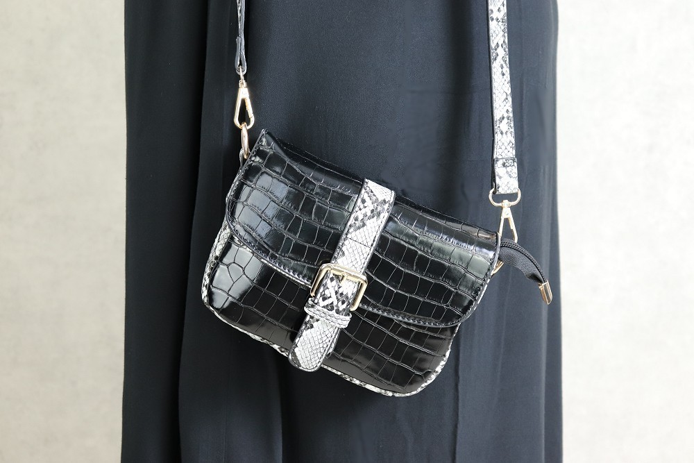 Sac à main pour femme tendance à rabat, porté à l'épaule, imitation cuir en peau de serpent, finition en point roulé. Cordelière amovible sur le devant. Doté d'une poche a l'intérieure avec fermeture à glissière.