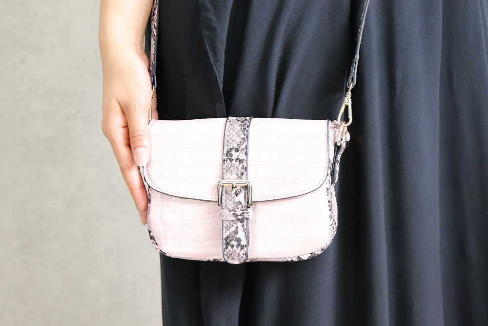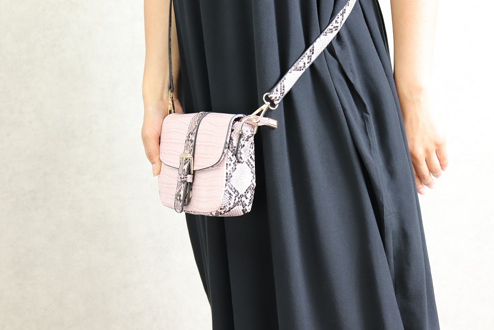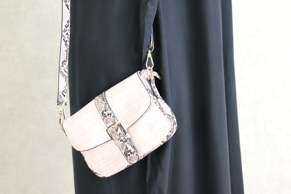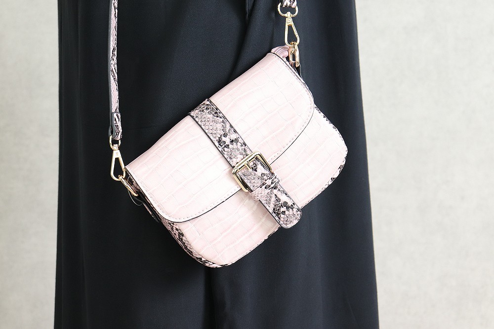 Sac a main pour femme avec parti en motif peau de Python - Couleur rose clair