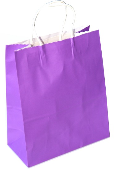 Sac cadeau en papier mauve robuste (27 x 22 x 11 cm).