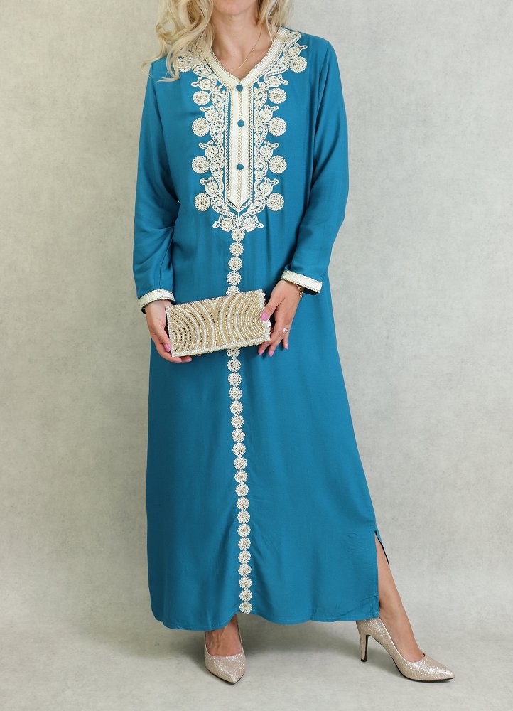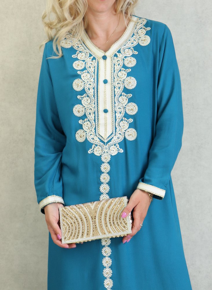 Sac artisanal marocain en cuir de couleur bleue avec de jolis motifs brodés - REF. 18072 (20.00 €)