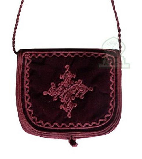 Sacoche artisanale en tissu mabra bordeaux avec de jolis motifs brodés Vetement & Accessoire