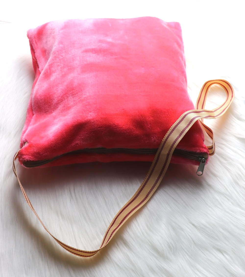 Sacoche en velours très doux avec fermeture zip et bandoulière. Permet de ranger son tapis, ses livres, boussoles ou autre objets et de les transporter facilement pour les voyages. Si vous mettez un tapis ou des vêtements à l'intérieur la sacoche se transforme en petit coussin très doux et pratique pour les voyages...