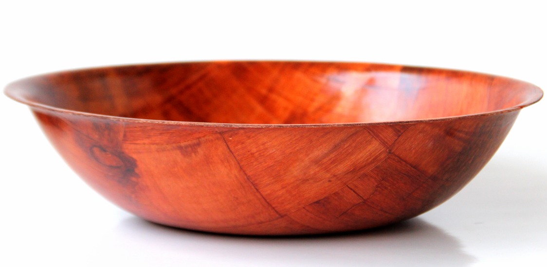 Plat creux en bois de 30 cm de diamètre de style oriental idéal pour servir des plats et aliments exotiques.