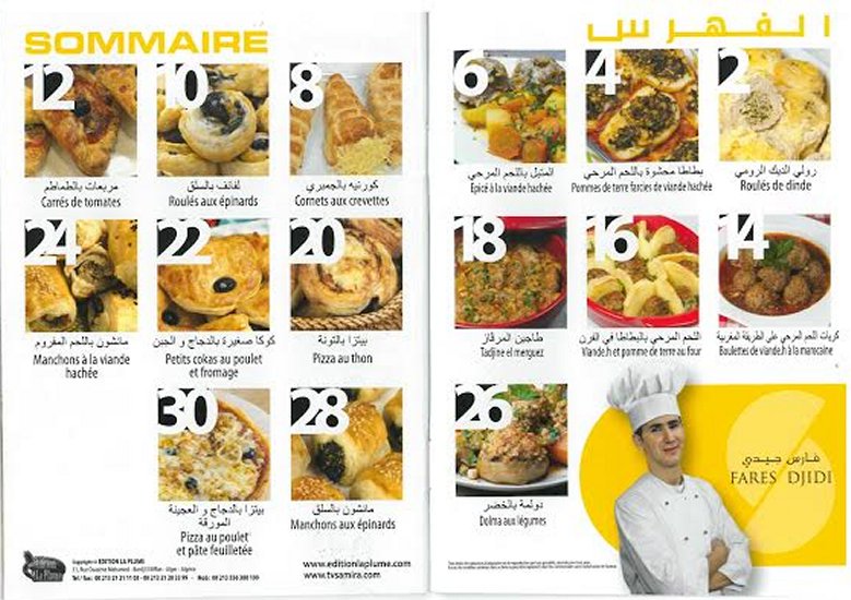 Livre bilingue (français/arabe) à petit prix avec 15 recettes de cuisines illustrées pas à pas.