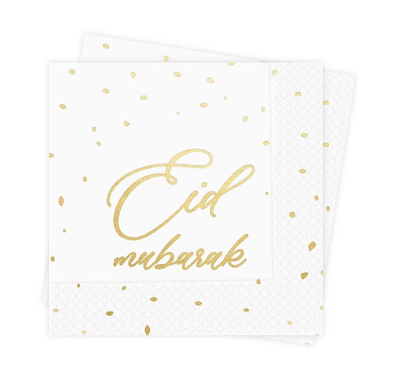 Serviettes Eid Mubarak - Couleur blanc dore - 12 serviettes